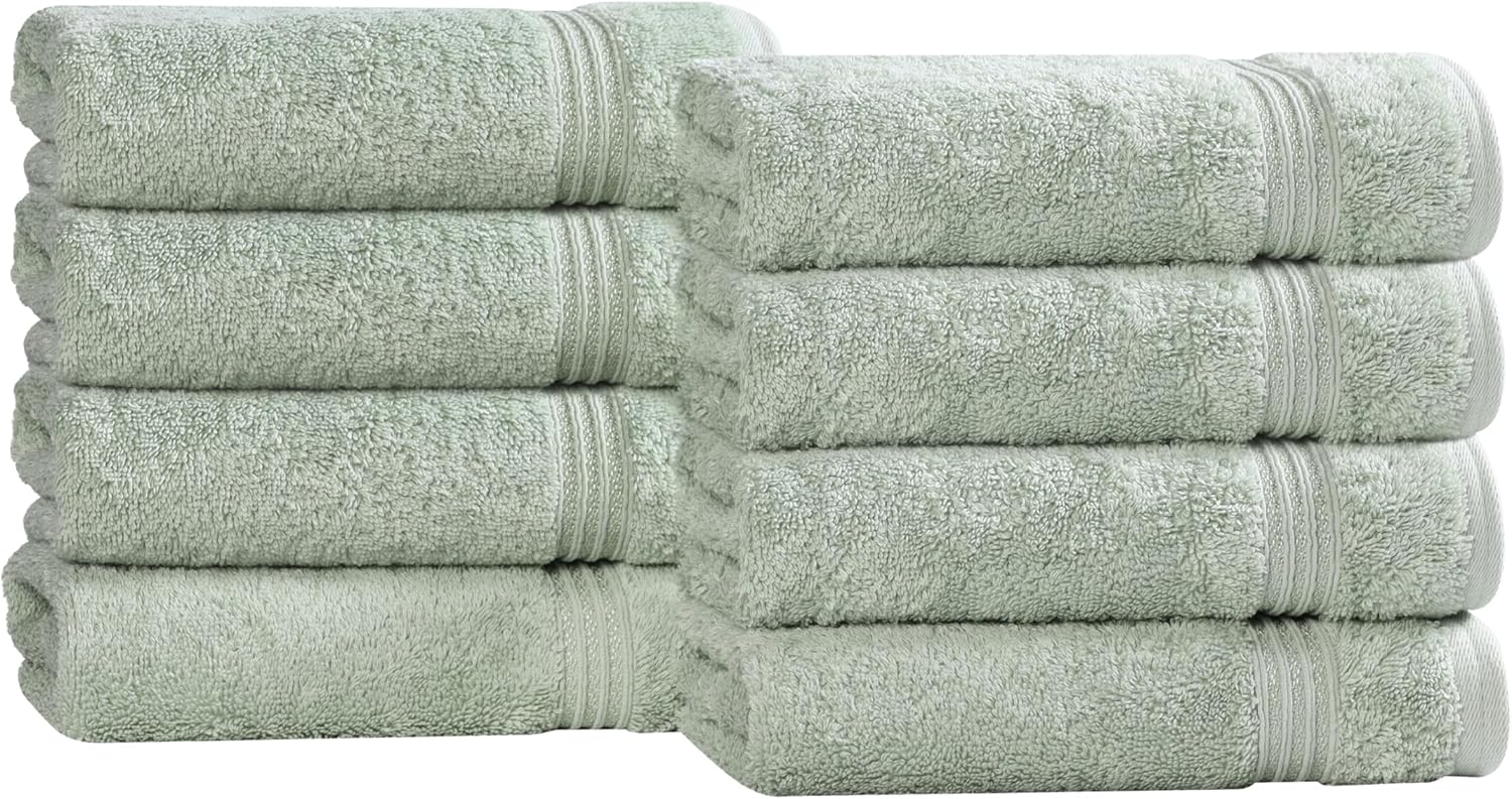 Superior Egyptian Cotton 8-Piece Hand Towel Set, Towel Basics For Quick Dry, Absorbent Small Towels, Facial, Spa, Kitchen, Bathroom Essentials, Apartment, Guest Bath, Soft, Washcloth, Sage