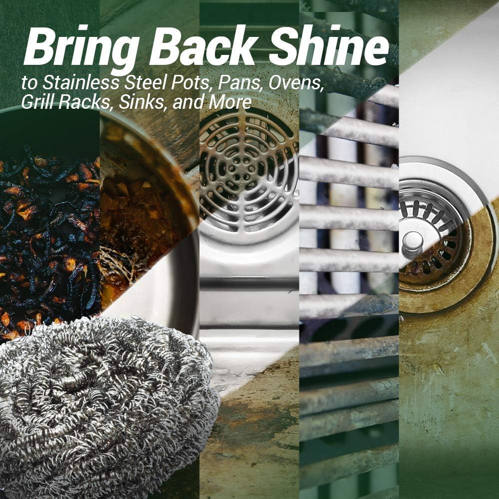 - TOUGH ON GRIME: These scrubbers effortlessly tackle your toughest jobs, effectively cleaning cookware without ruining the finish. Easily scrub away grease, grimy build-up and baked-on foods from stainless steel pots and pans, ovens, grill racks, sinks and more.