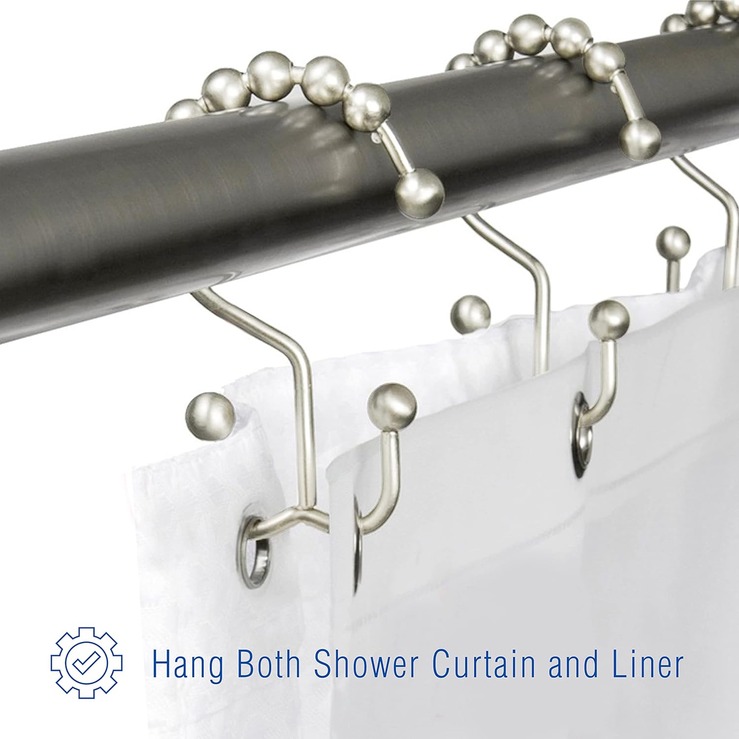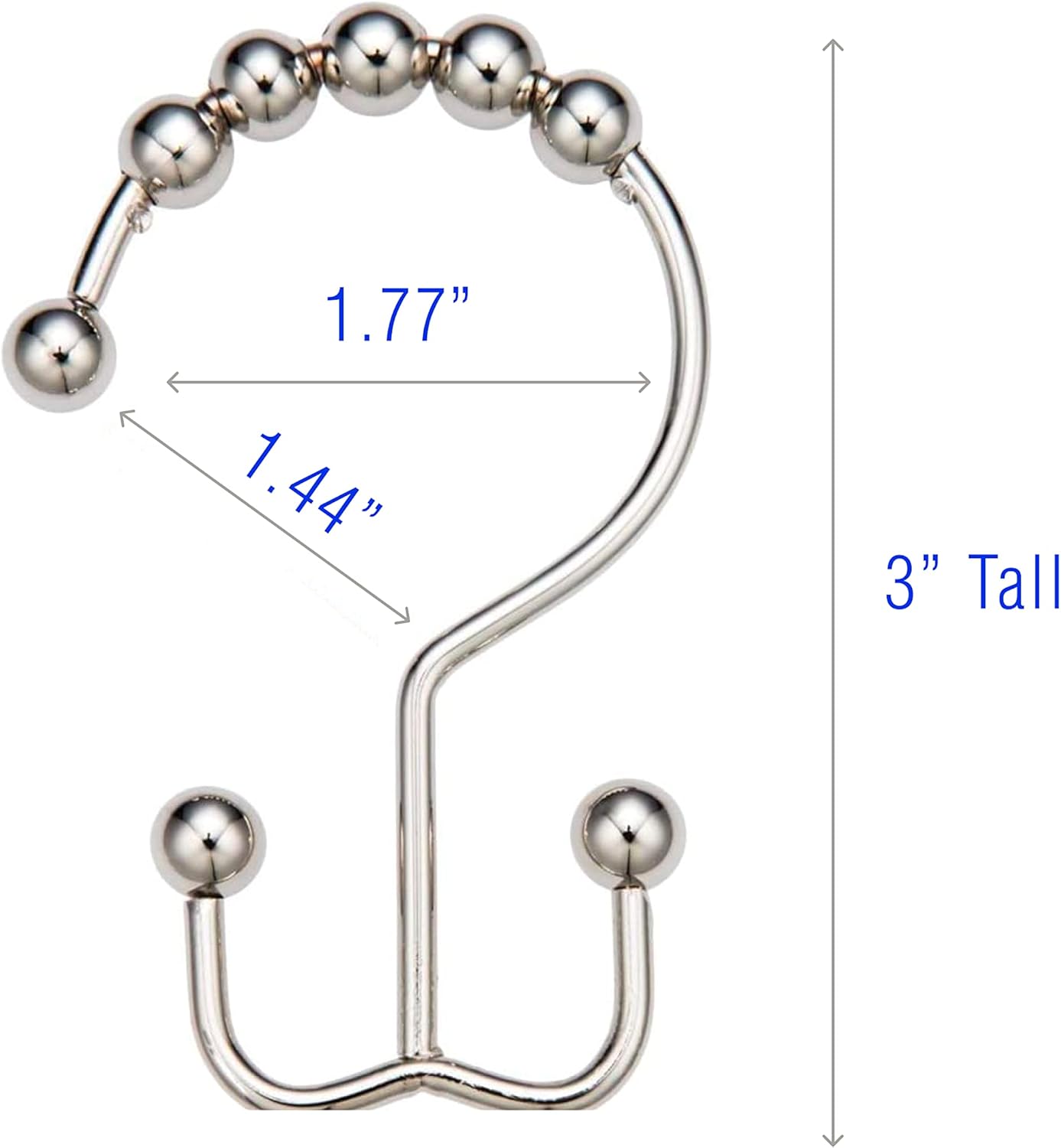 2LB Depot Double Shower Curtain Hooks Rings Polished Nickel Decor Finish Premium Rust-Resistant Stainless Steel Metal Hooks Roller Balls Glide on Shower Rods 12-Piece Set