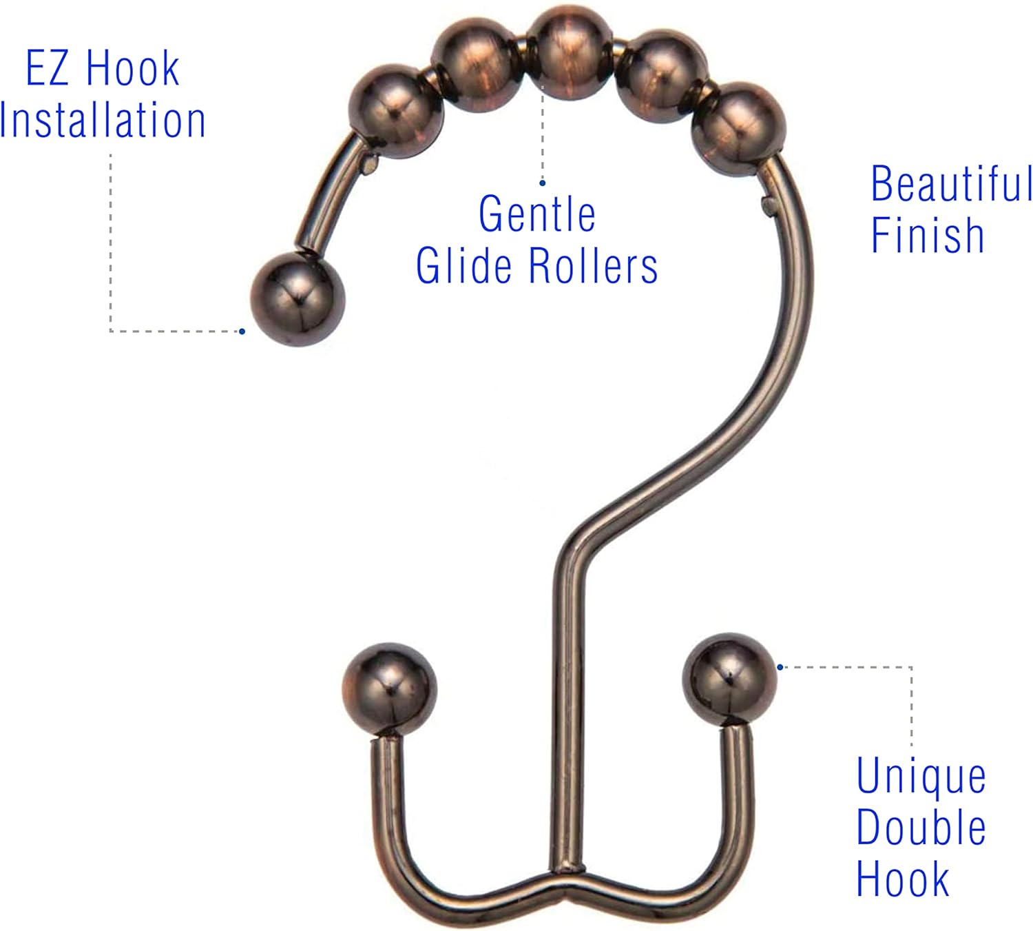 - Timeless Elegance: Transform your shower area with our uniquely designed bronze-finished shower curtain hangers. Their exquisite design effortlessly adds a touch of charm to your bathroom decor.