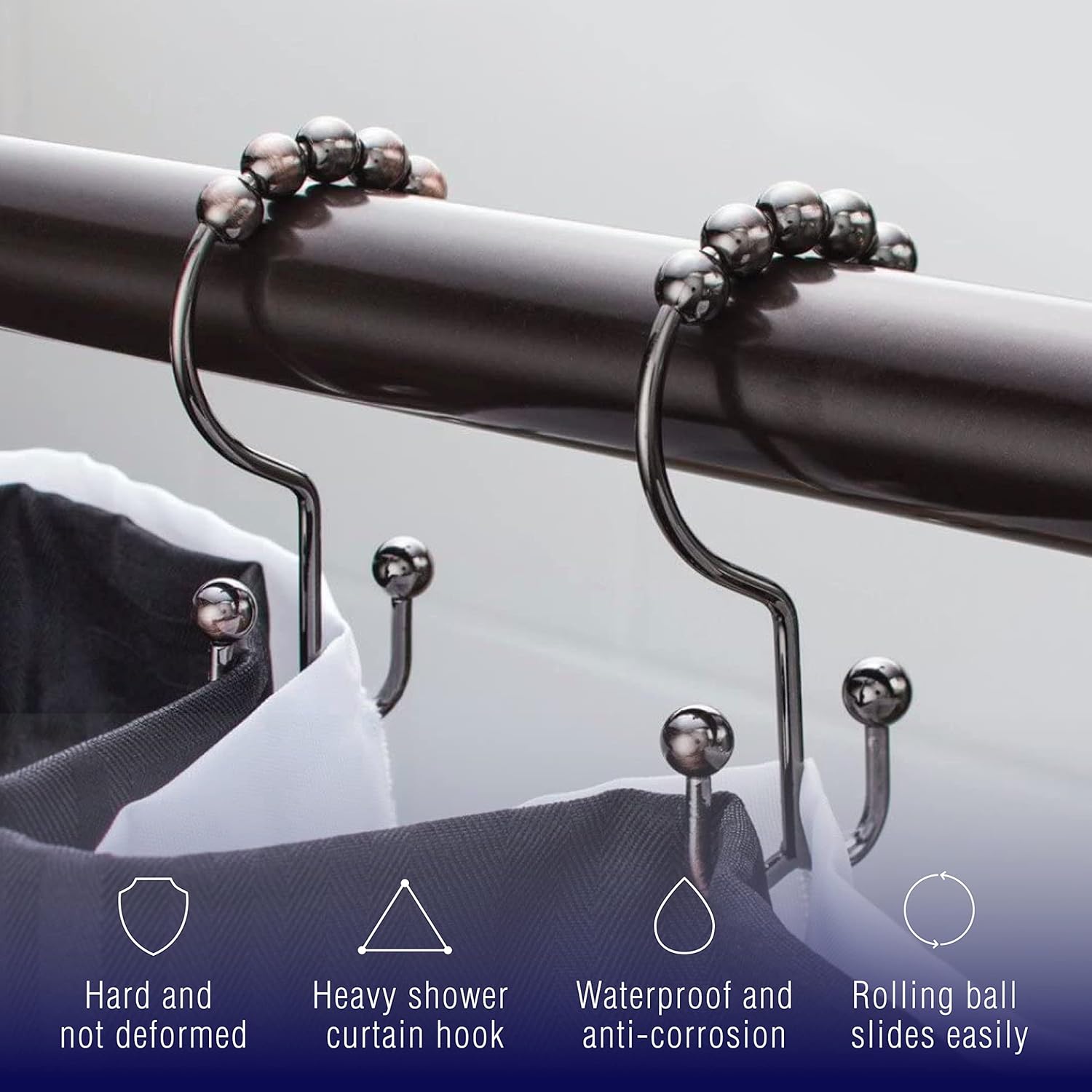 - Easy Curtain Gliding: Transform your shower experience with our oil-rubbed double shower hooks. Their easy-glide rollers and deformation-resistant ensure a smooth, hassle-free curtain movement.