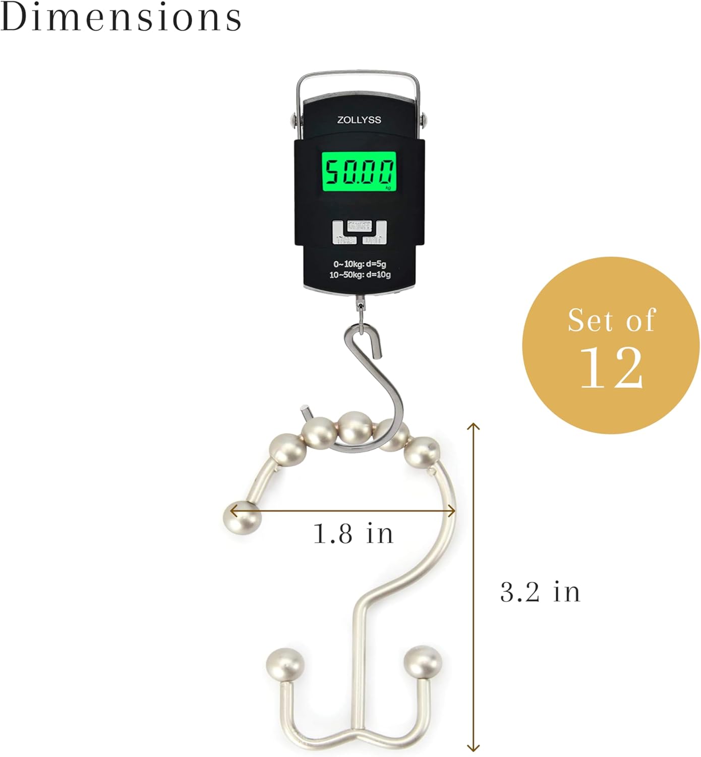- Sold as a set of 12 bathroom curtain hooks. This shower rod hooks meets most standard sizes of shower curtain rods. Easily hang long curtain with 12 hooks set.