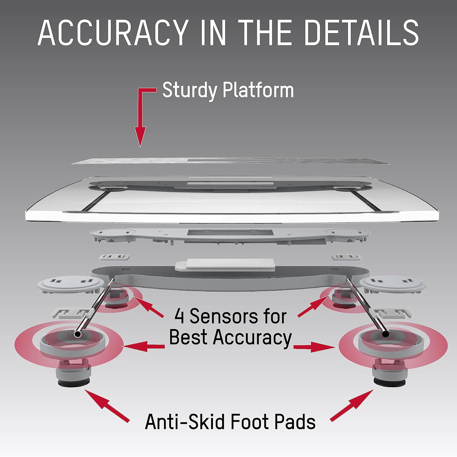 - High Accuracy: Four Precision Sensors ensures best accuracy and highest standards with 0.2 lbs. increments. Extra High Capacity of 440 lbs (lb/kg/st).