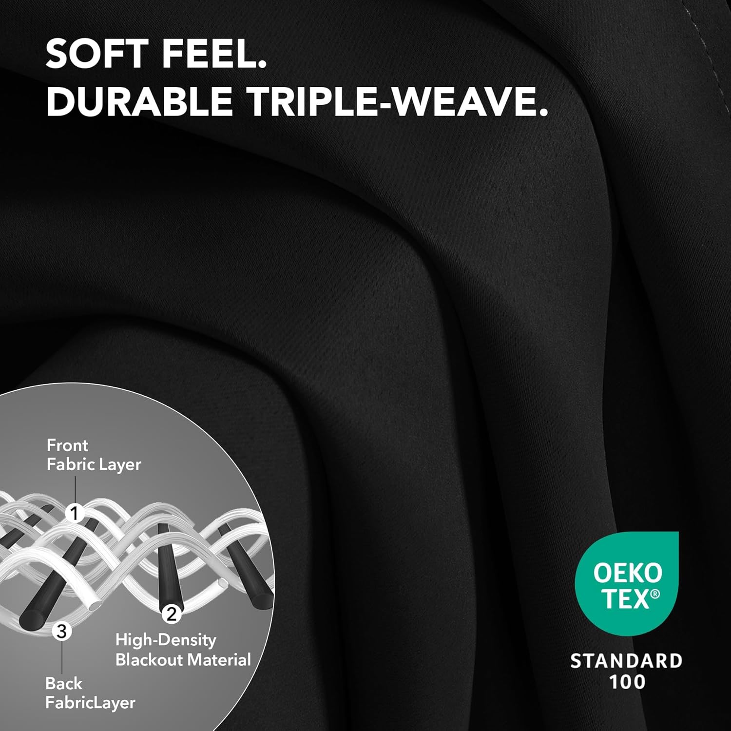 - Darkening & Light Control – Crafted from premium 100 % polyester with a dense triple‑weave, our panels darken your room—deep hues block up to 99 % of light while lighter colors soften daylight—so you sleep better and enjoy a calm glow