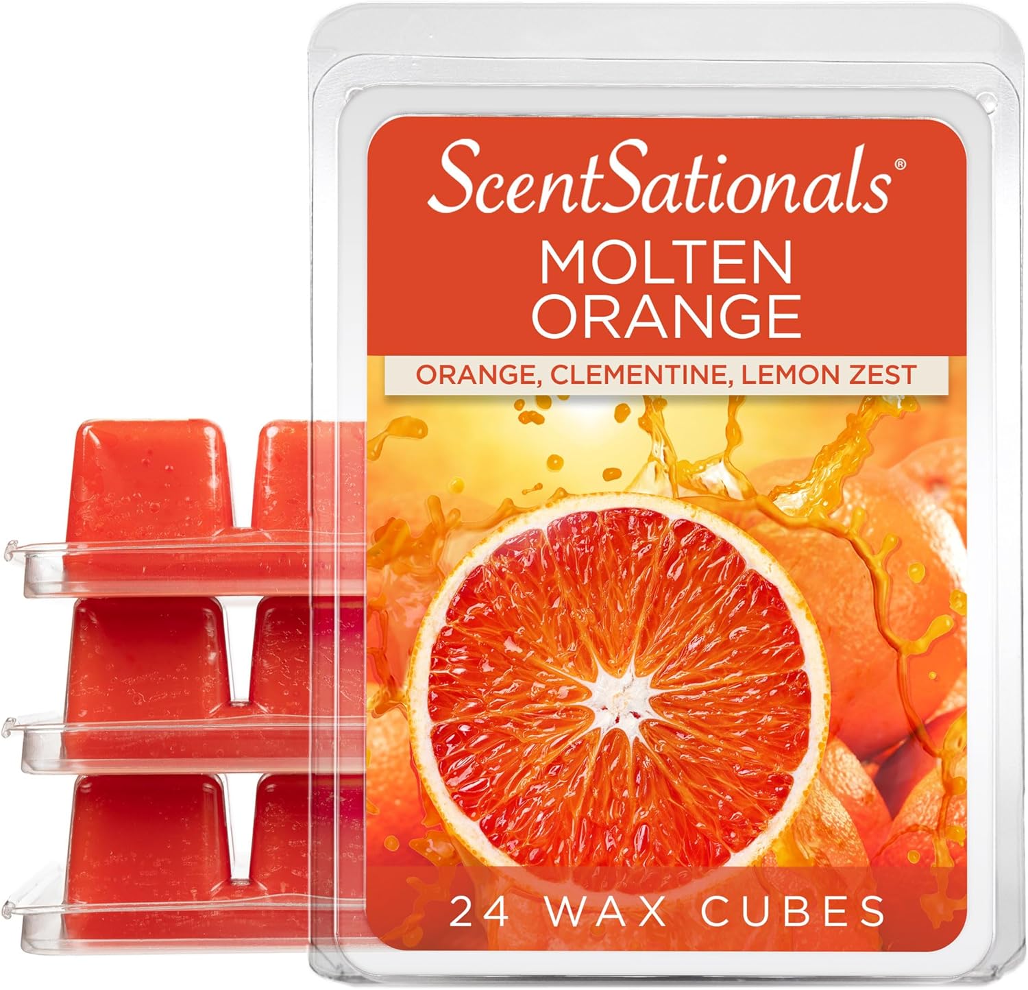Scentsationals Wax Melts, Wax Cubes Strong Scent - Molten Orange - Long Lasting Scented Melts for Warmer, 10oz (24-Cubes)