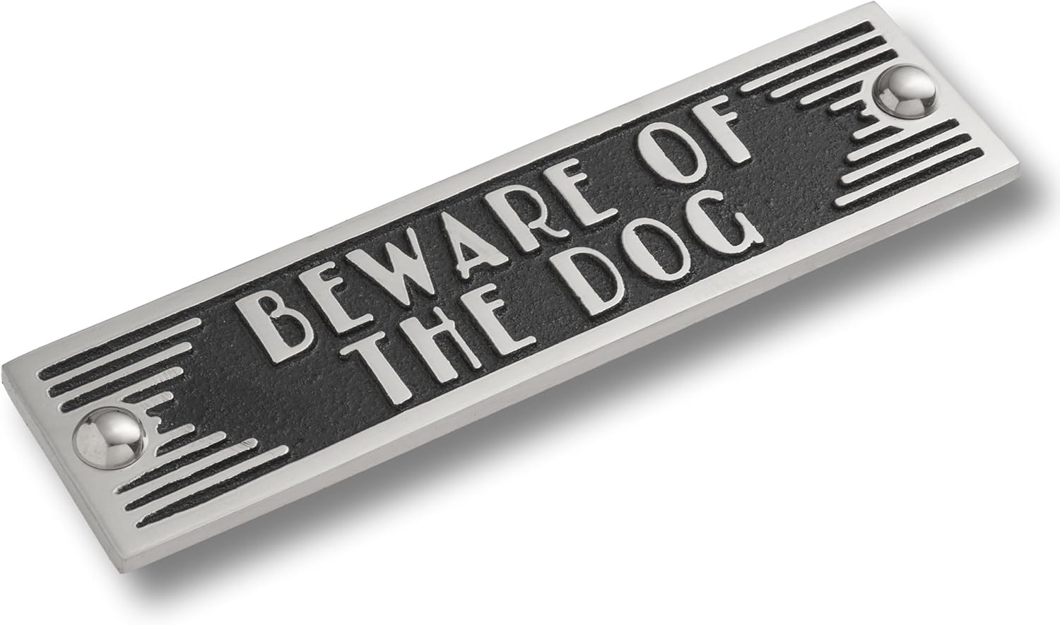 - Then this is the perfect item for you! With a beware of the dog Aluminium door sign visitors will be informed that you own a hairy, vicious killing machine that will tear their leg off for a biscuit. Or that they might not want to trip over the lazy animal.