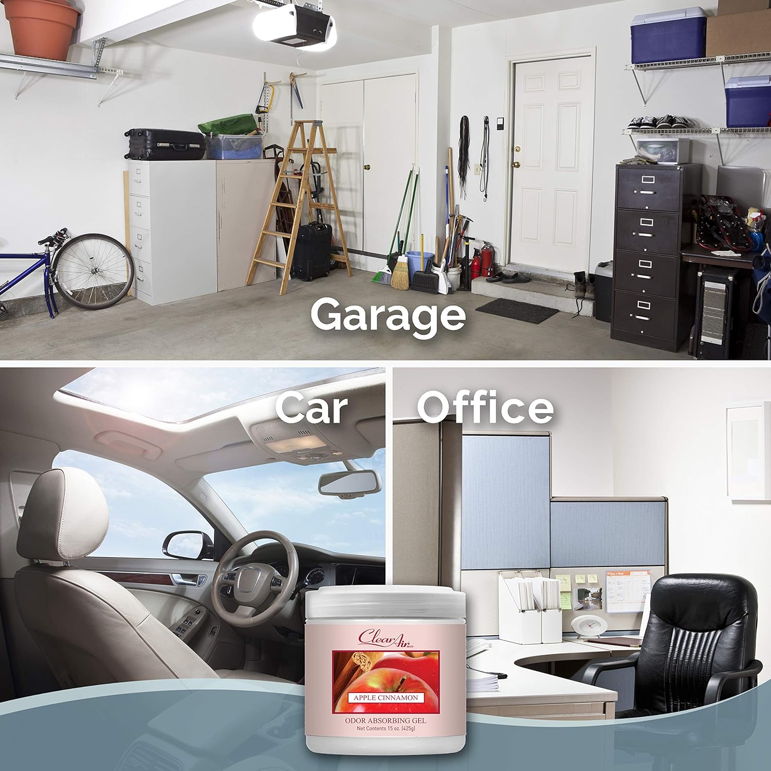 Clear Air Odor Absorber Gel - 15 oz, Pack of 2 - Air Freshener Absorbs and Eliminates Odors in Bathrooms, Cars, Boats, RVs and Pet Areas - Made with Essential Oils - Apple Cinnamon Scent
