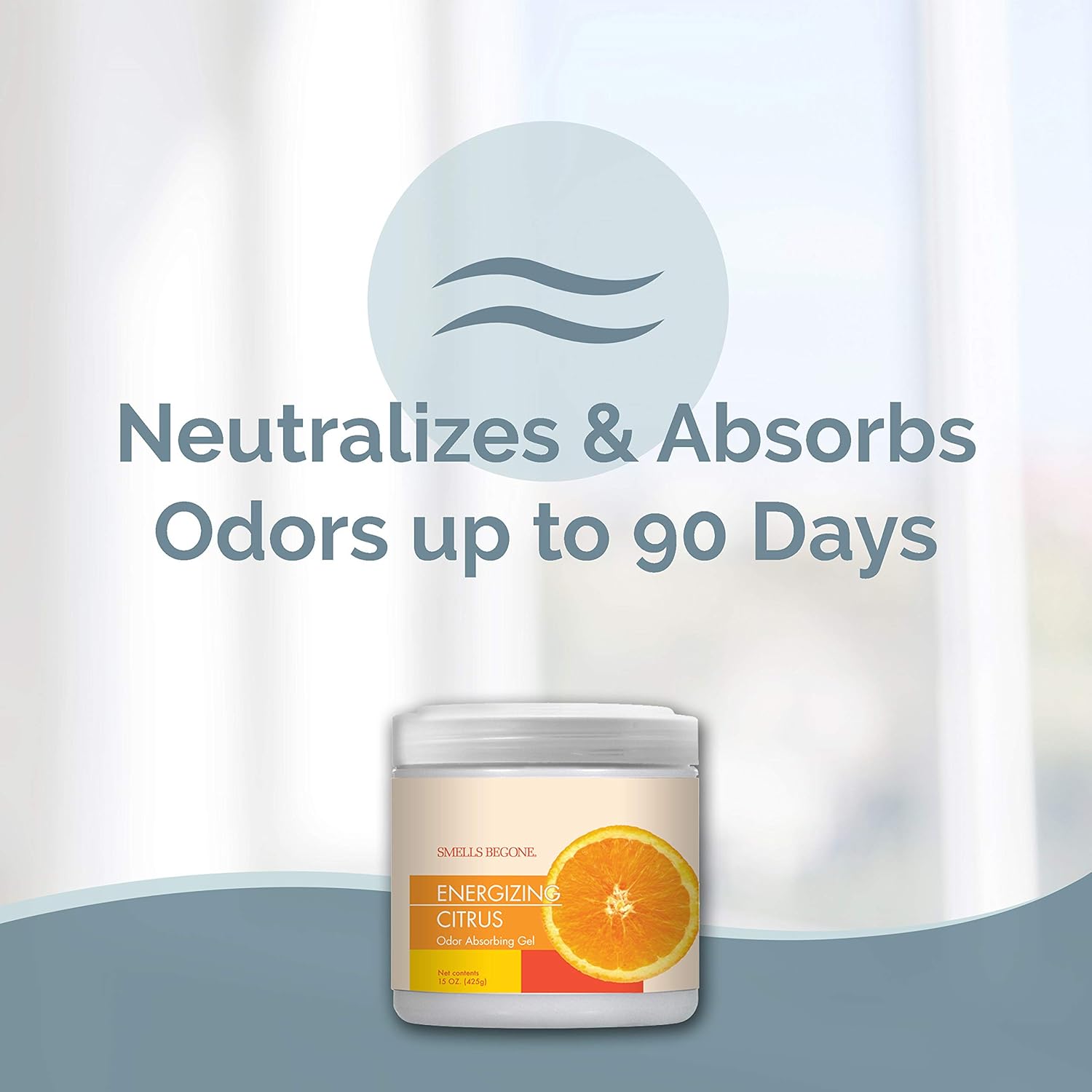SMELLS BEGONE Air Freshener Odor Absorber Gel - 15 oz, Pack of 2 - Absorbs and Eliminates Odor in Pet Areas, Bathrooms, Cars, & Boats - Made with Essential Oils - Energizing Citrus Scent