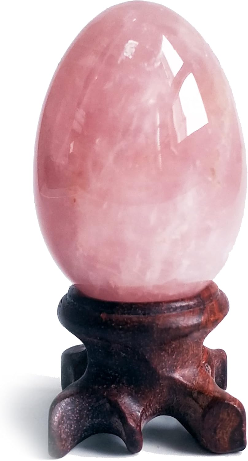 Polar Jade Rose Quartz Gemstone Egg Sphere with Wooden Stand for Healing Meditation Chakra Balancing and Home Decoration (L Size)