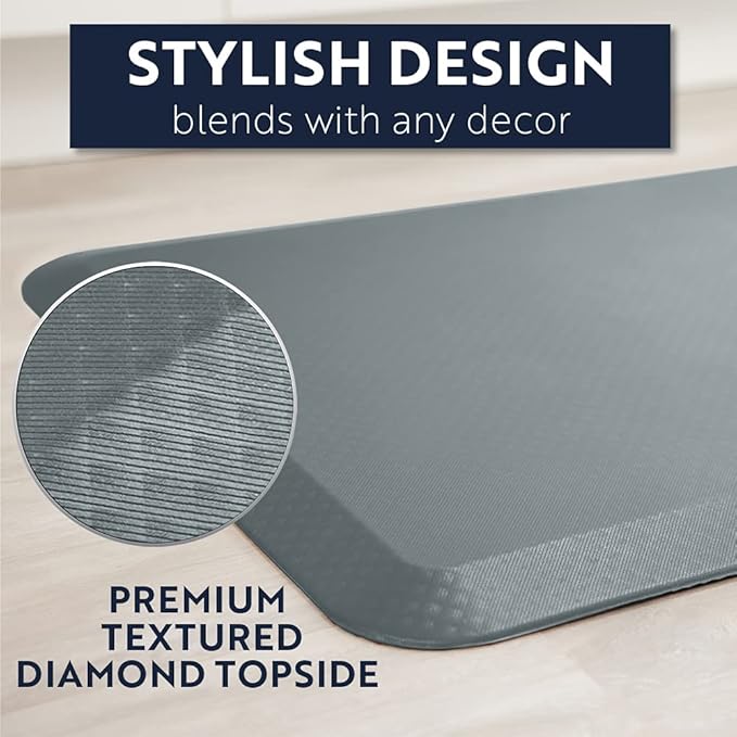 - USE AT HOME OR WORK: perfect for anyone who stands for long periods of time at home or work; great rug for in front of kitchen counters, laundry rooms, standing desks, workspaces, etc; ideal for professional use in locations such as hair salons, restaurants and anywhere all day comfort is essential; stylish diamond texture blends seamlessly with any decor