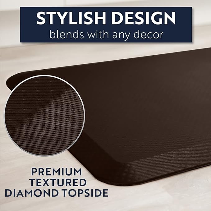 - USE AT HOME OR WORK: perfect for anyone who stands for long periods of time at home or work; great rug for in front of kitchen counters, laundry rooms, standing desks, workspaces, etc; ideal for professional use in locations such as hair salons, restaurants and anywhere all day comfort is essential; stylish diamond texture blends seamlessly with any decor