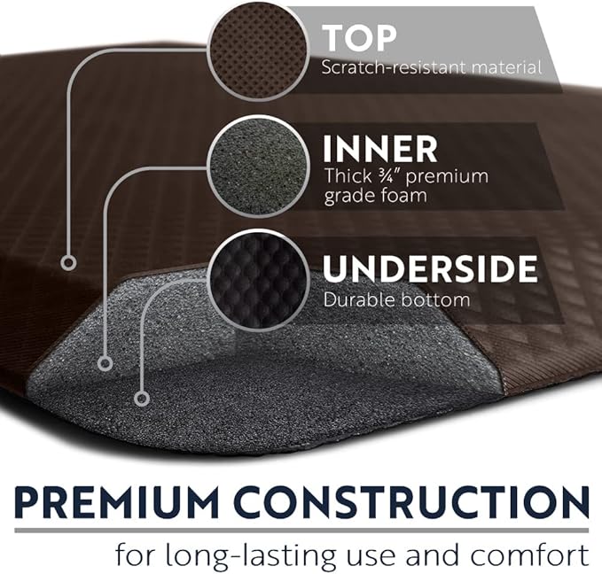 KANGAROO Thick Ergonomic Anti Fatigue Mats for Kitchen Floor, 48x20, Cushioned Standing Office Desk Mat, Waterproof Scratch Resistant Topside, Supportive All Day Comfort Padded Foam Rugs, Brown