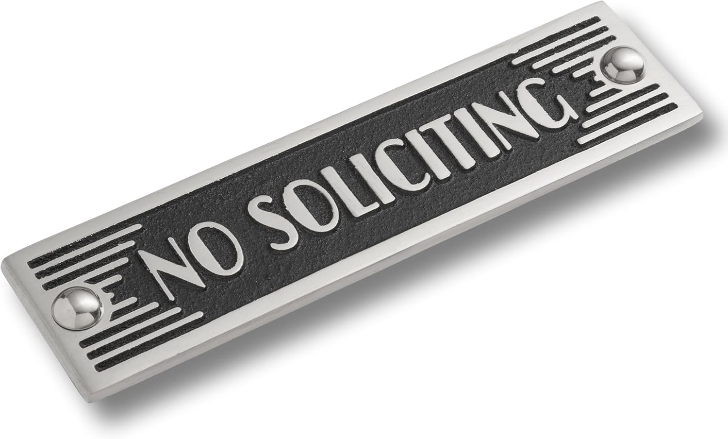 - Then this is the perfect item for you! With a No Soliciting Art Deco door sign unwanted callers will know that they are actually not wanted and will avoid you to live another day and pester some other poor unfortunate sole whom did not invest in one of our No Soliciting signs.