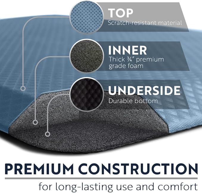 - THICK AND SUPPORTIVE CUSHIONING: extra thick, three quarter inch foam mat is extremely comfortable and engineered to help keep you supported; premium foam inner layer for strong rebound and maximum support; your feet will thank us later