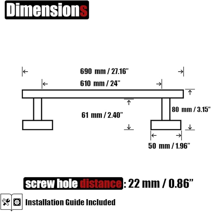 - 【Note Measure Before Buying Need 28 Inch Space】 Dimensions 27.15x3.15x1.96 Inch, 24 Inch USEABLE Bar, No need to fold your towel any more.