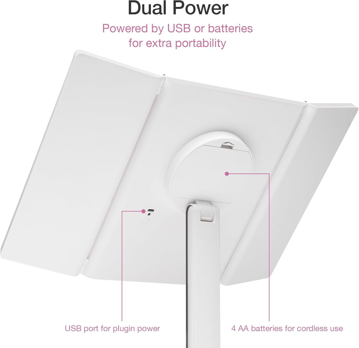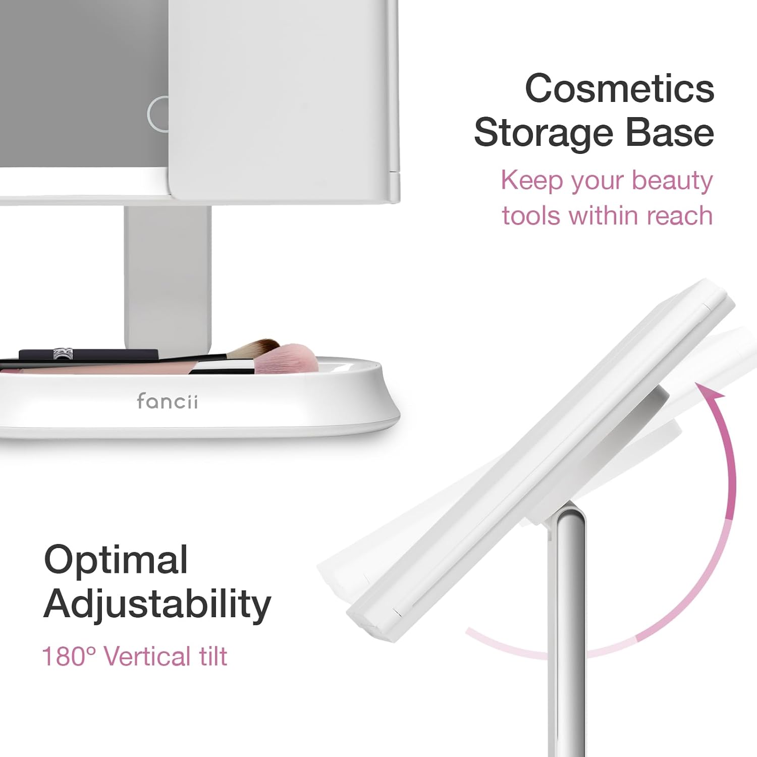 - Fancii Makeup Mirror With Natural Led Lights, Lighted Trifold Vanity Mirror With 5x & 7x Magnifications - 40 Dimmable Lights, Touch Screen, Cosmetic Stand - Sora (White)