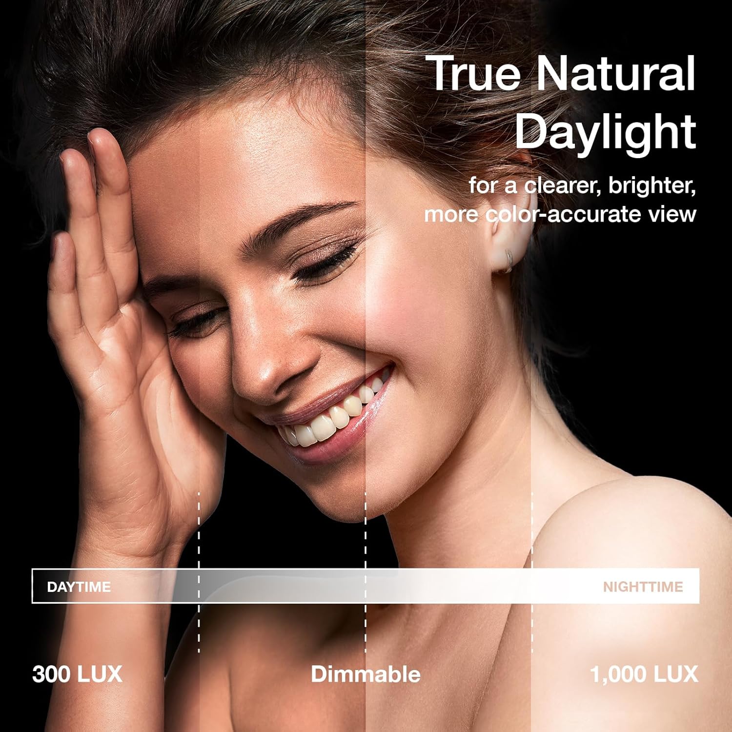 - Natural Daylight LEDs - 2x brighter and softer illumination than the next best. 58 built-in dimmable LEDs closely mimic soft, natural sunlight providing you with true-to-life color-correct details.