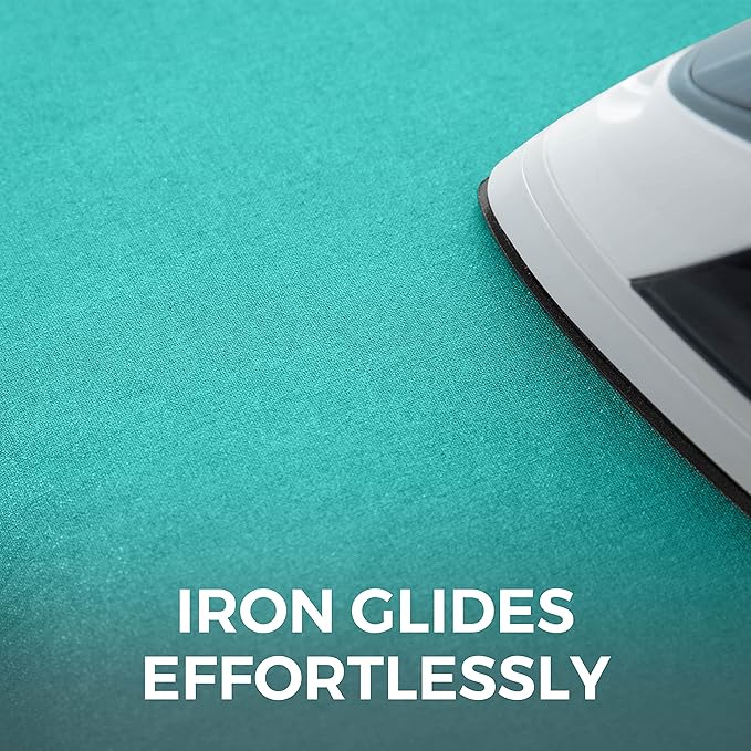HOME GENIE Ironing Board Cover, Silicone Coating, Full Size Scorch Resistant Padding, Elastic Edge Heavy Duty Iron Pad Covers Standard Boards, Hook and Loop Fastener Strap Extra Thick, Turquoise