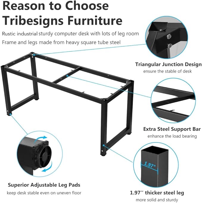- [SUPER STURDY ] β desktop made of 0.59" thicker laminated MDF, waterproof and ant scratch, very easy to clean, computer frame is made of heavy duty powder coated steel which ensures stability and durability, 1.57" by 1.57" width strong enough to support heavy duty parcels