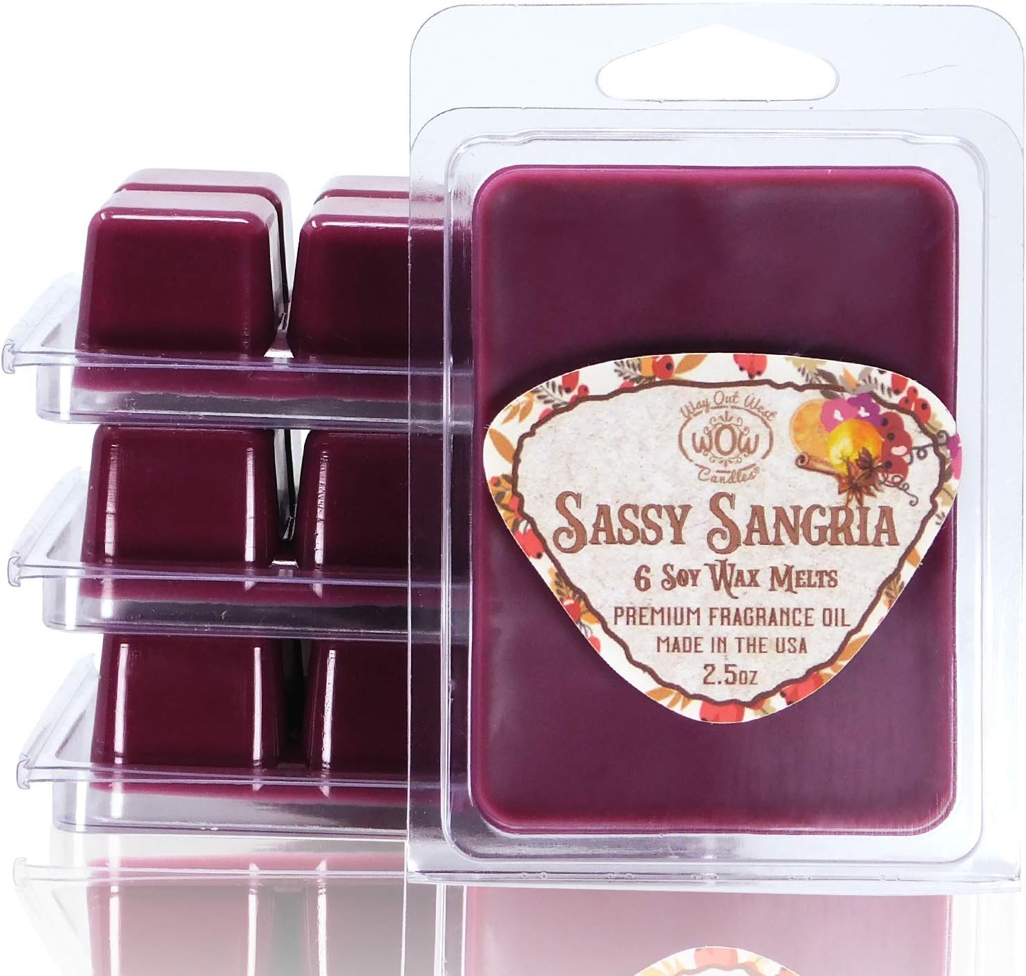 Scented Wax Melts for Wax Warmers - Highly Fragrant Air Freshener - 4 Pack Set of 6 Melt Cubes - Made in USA by Way Out West Candles (4, Sassy Sangria)