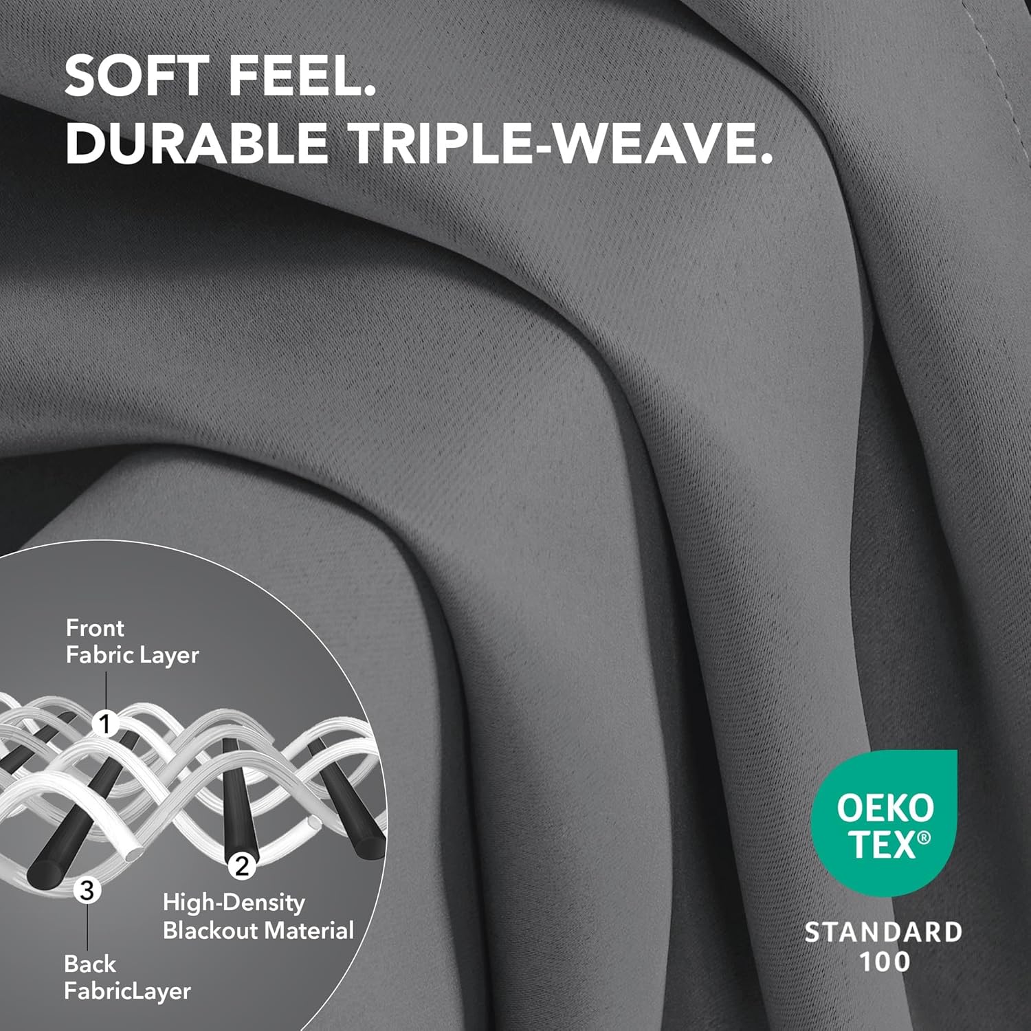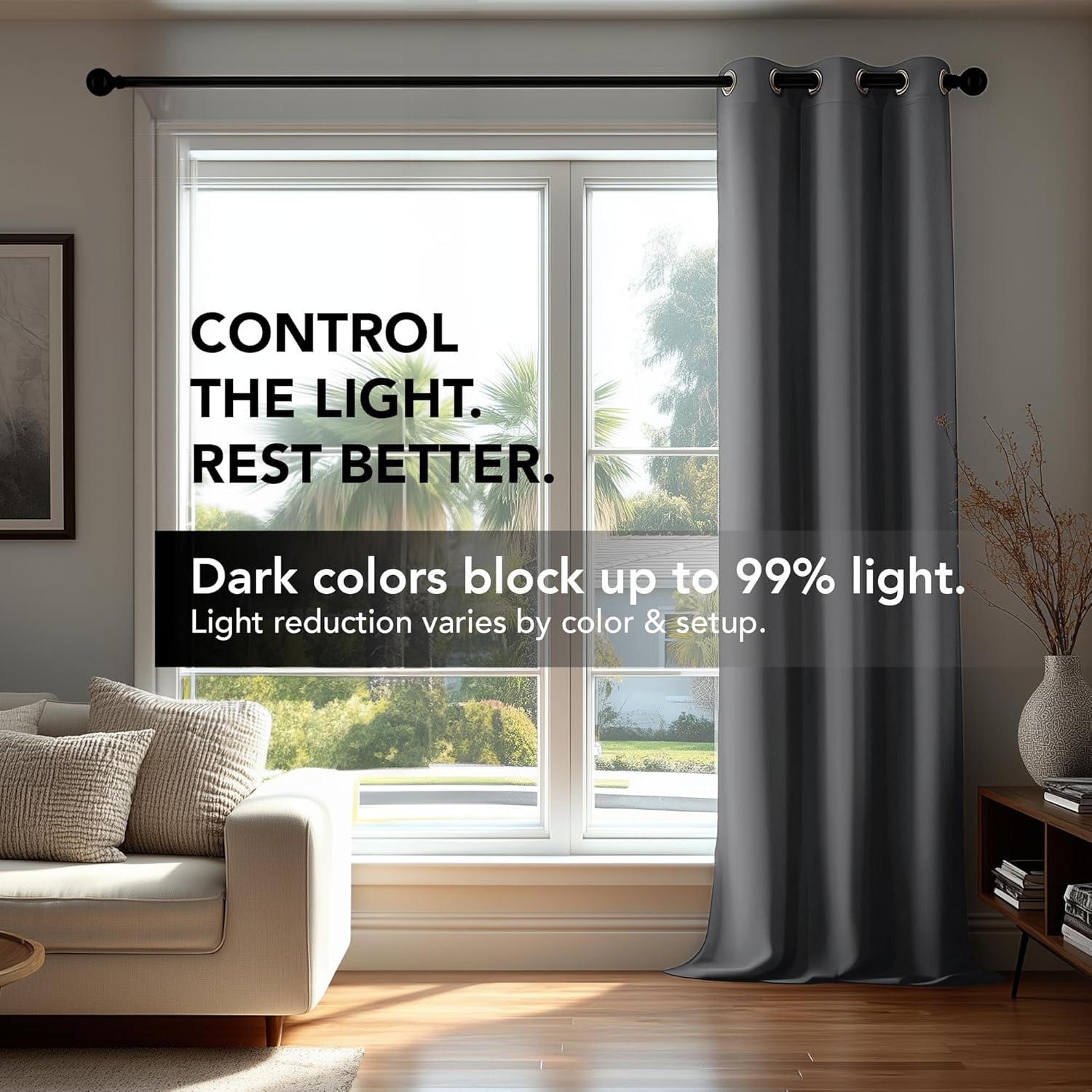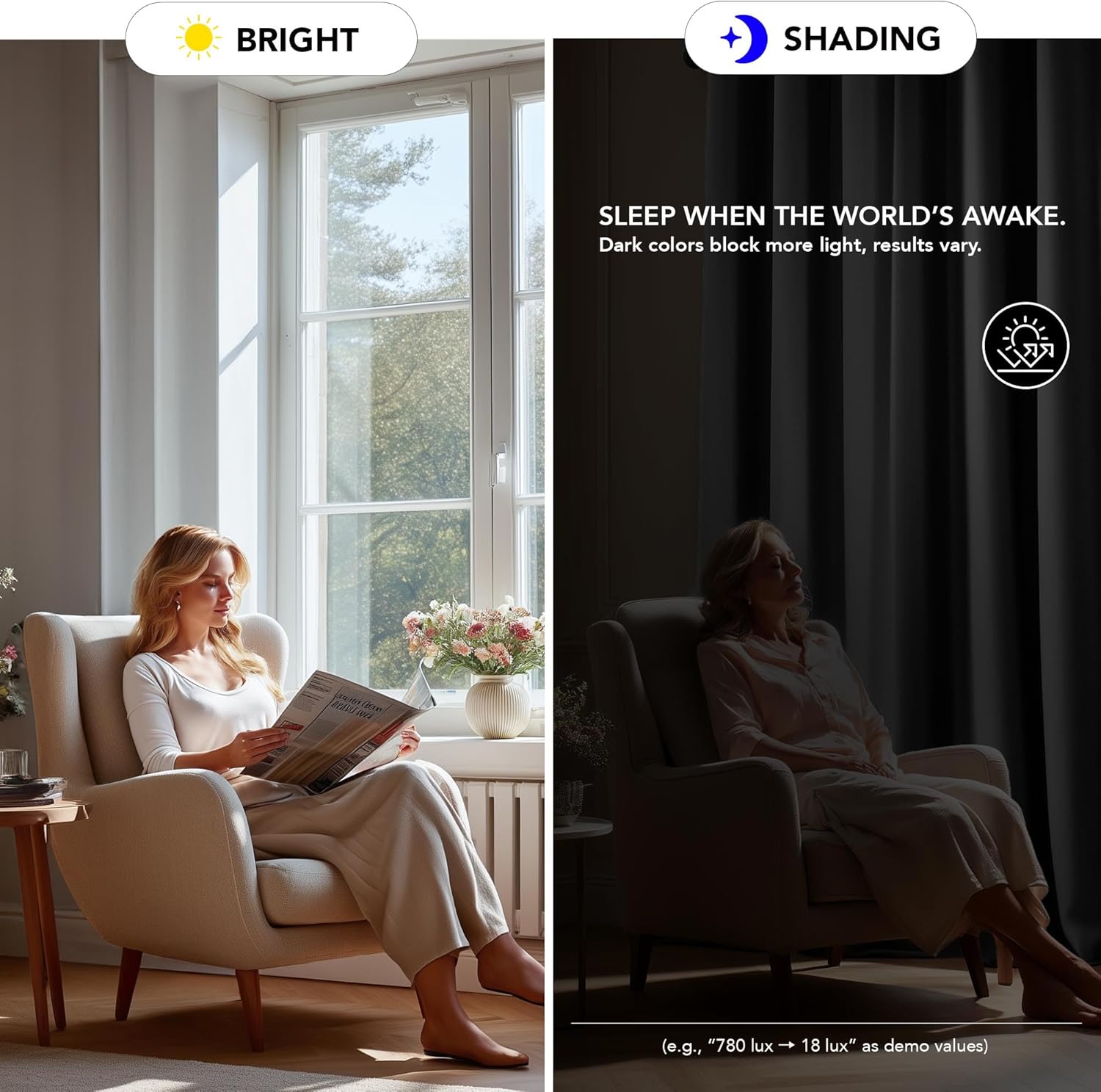 - Darkening & Light Control – Crafted from premium 100 % polyester with a dense triple‑weave, our panels darken your room—deep hues block up to 99 % of light while lighter colors soften daylight—so you sleep better and enjoy a calm glow