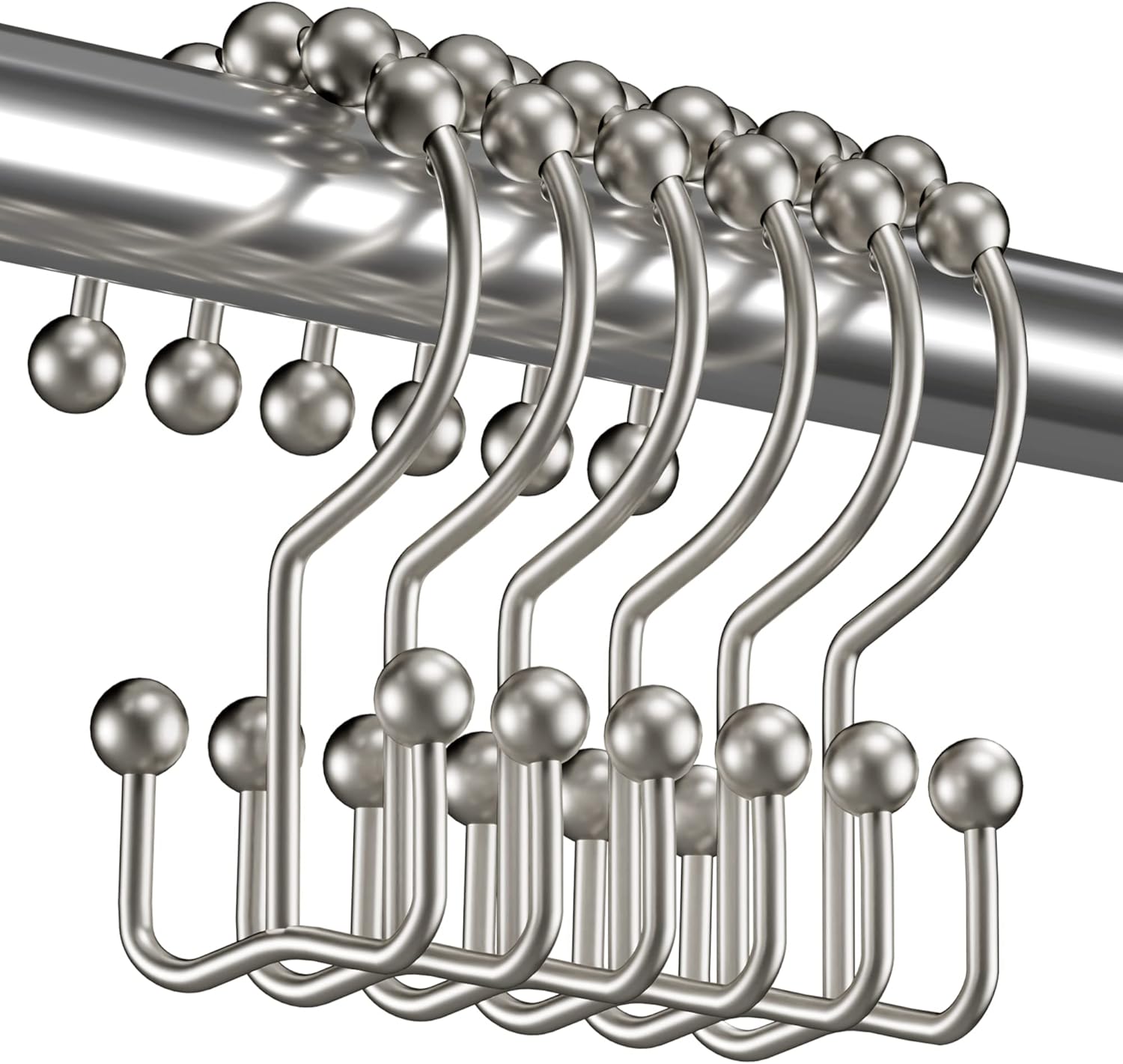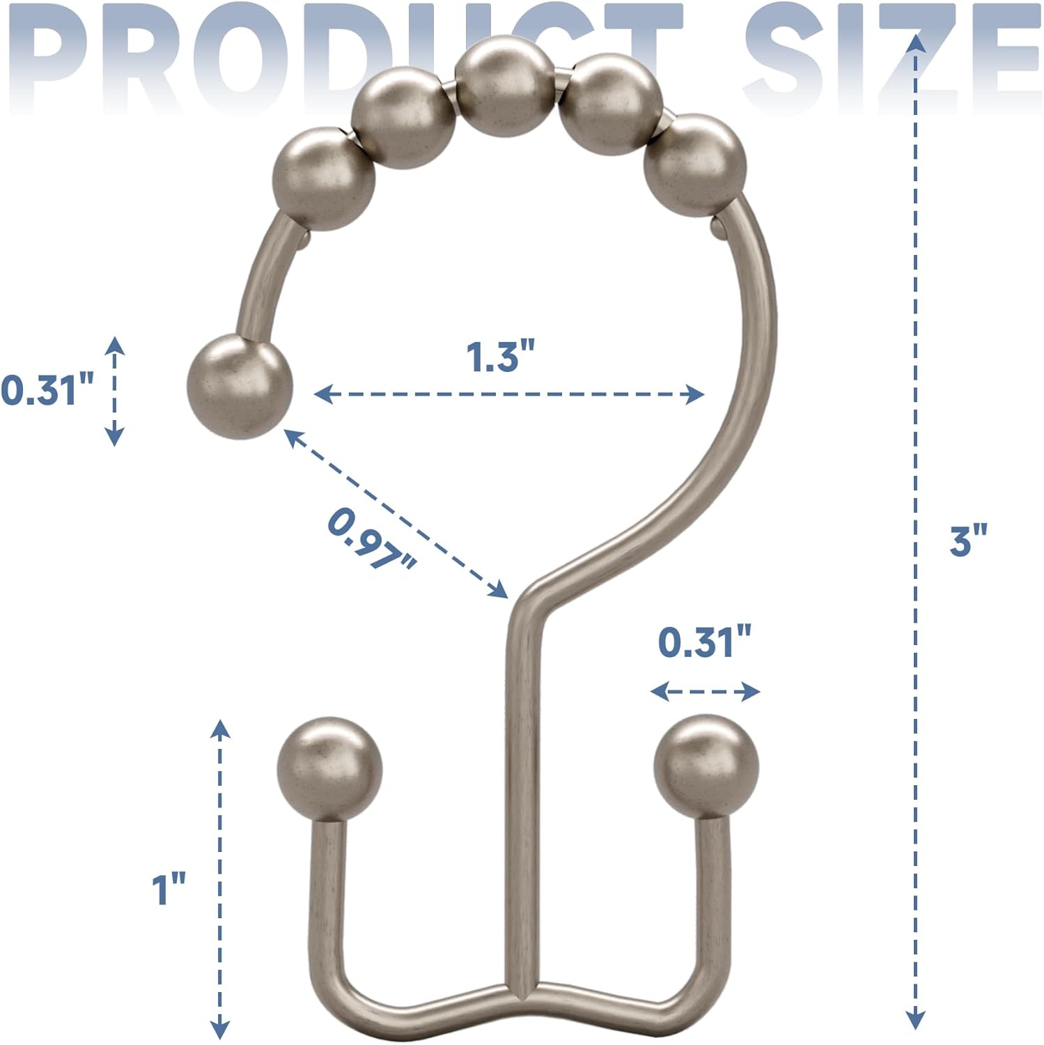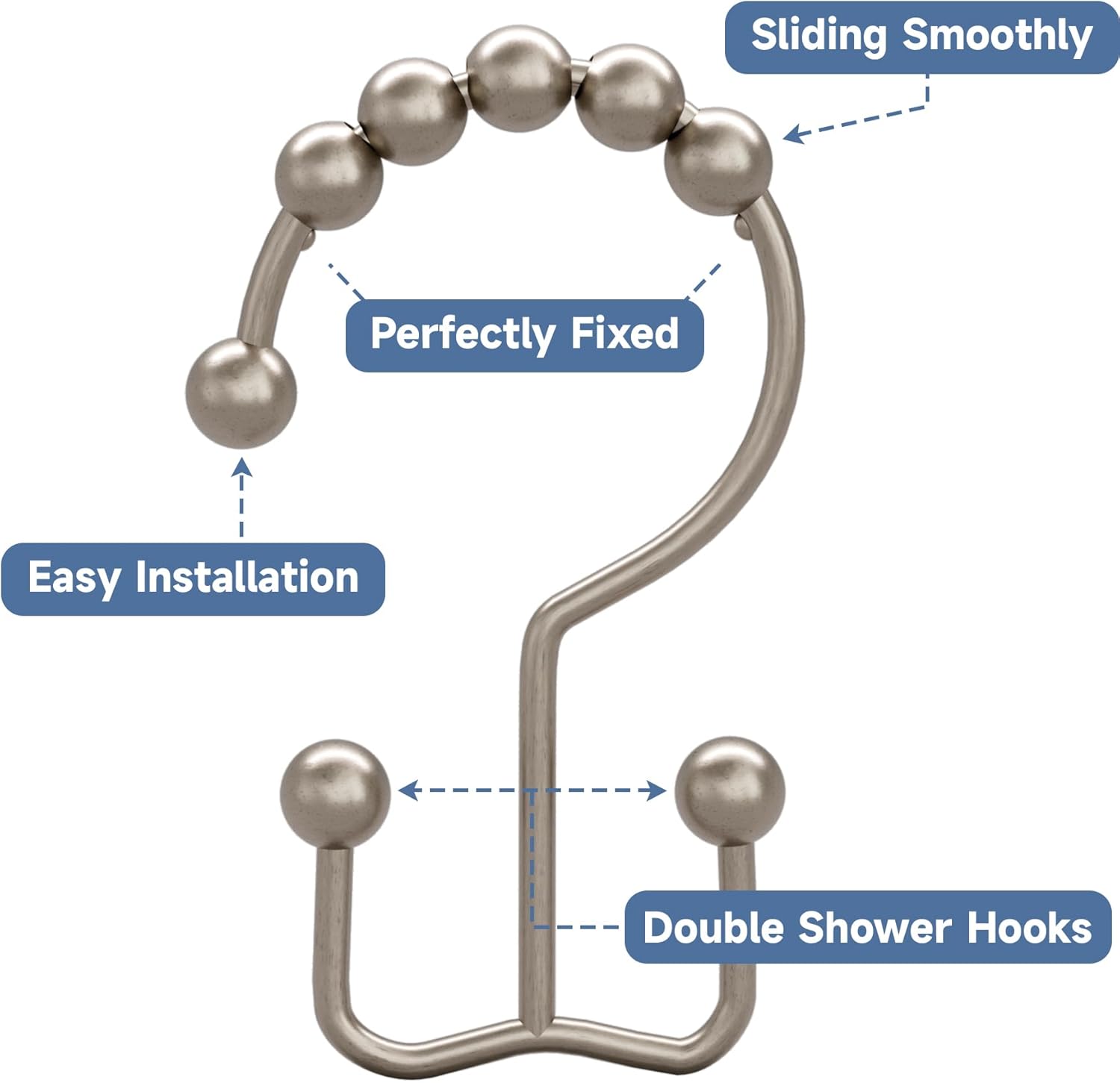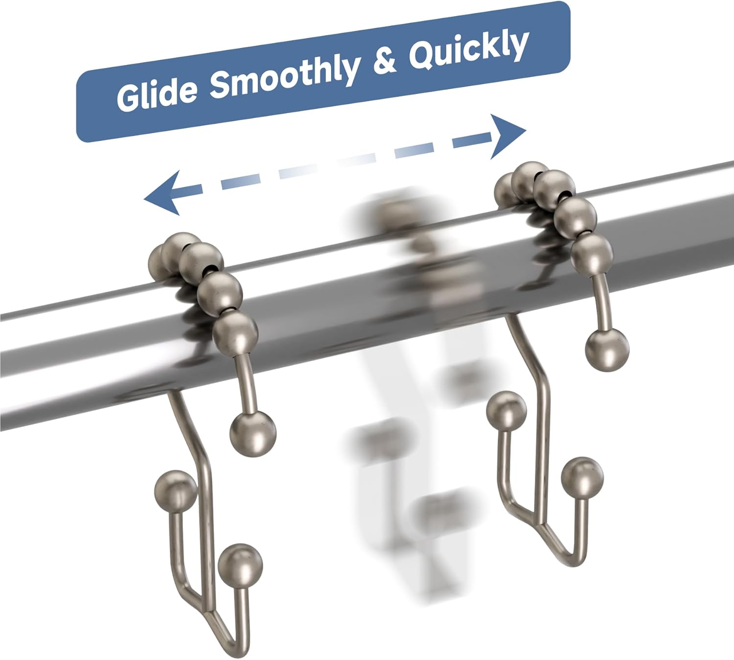 - Double hooks design - The double roller glide shower hooks are strong enough to hold up shower curtain and shower liner.
