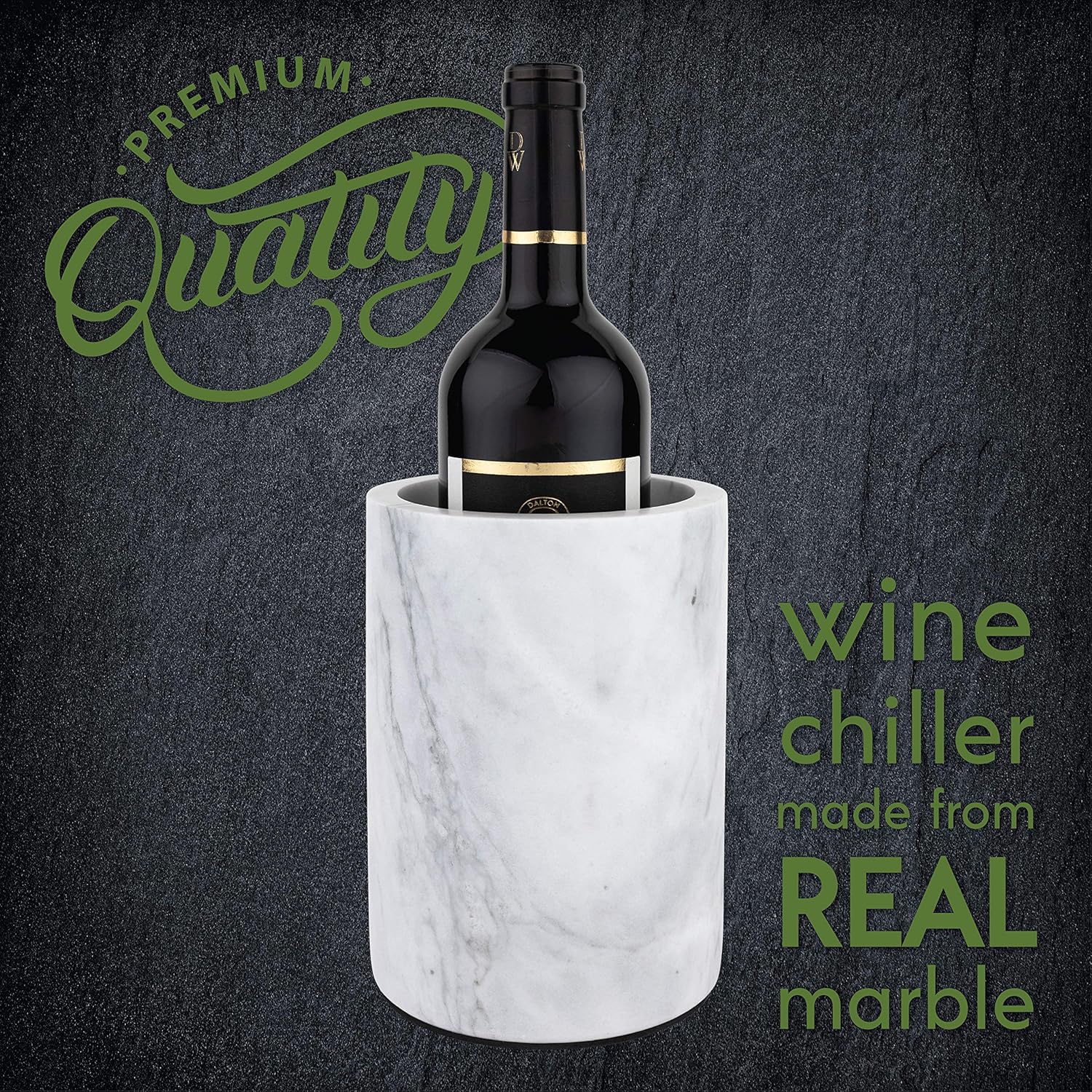 - MARBLE WINE CHILLER- Made of 100% smooth, solid, and durable marble, this wine cooler bucket will add a touch of elegance to any event! This wine bottle chiller has been designed to hold most wine and champagne bottles, but feel free to use it for any other beverages just as a bottle of water or juice for those hot summer days!