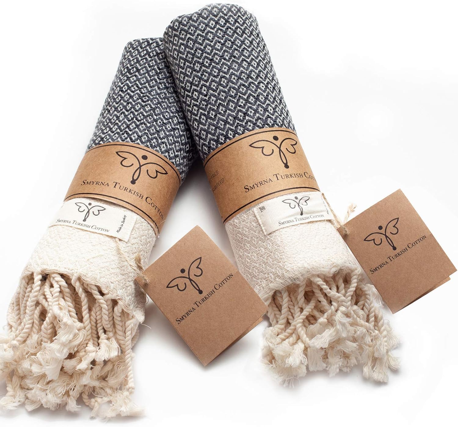 SMYRNA TURKISH COTTON Vintage Series Turkish Hand Towels, 16x40 inch, Decorative Turkish Hand Towels for Bathroom, Kitchen, Face, Hair, Tea, Yoga, Gym, Dishcloth Set of 2, Dark Gray