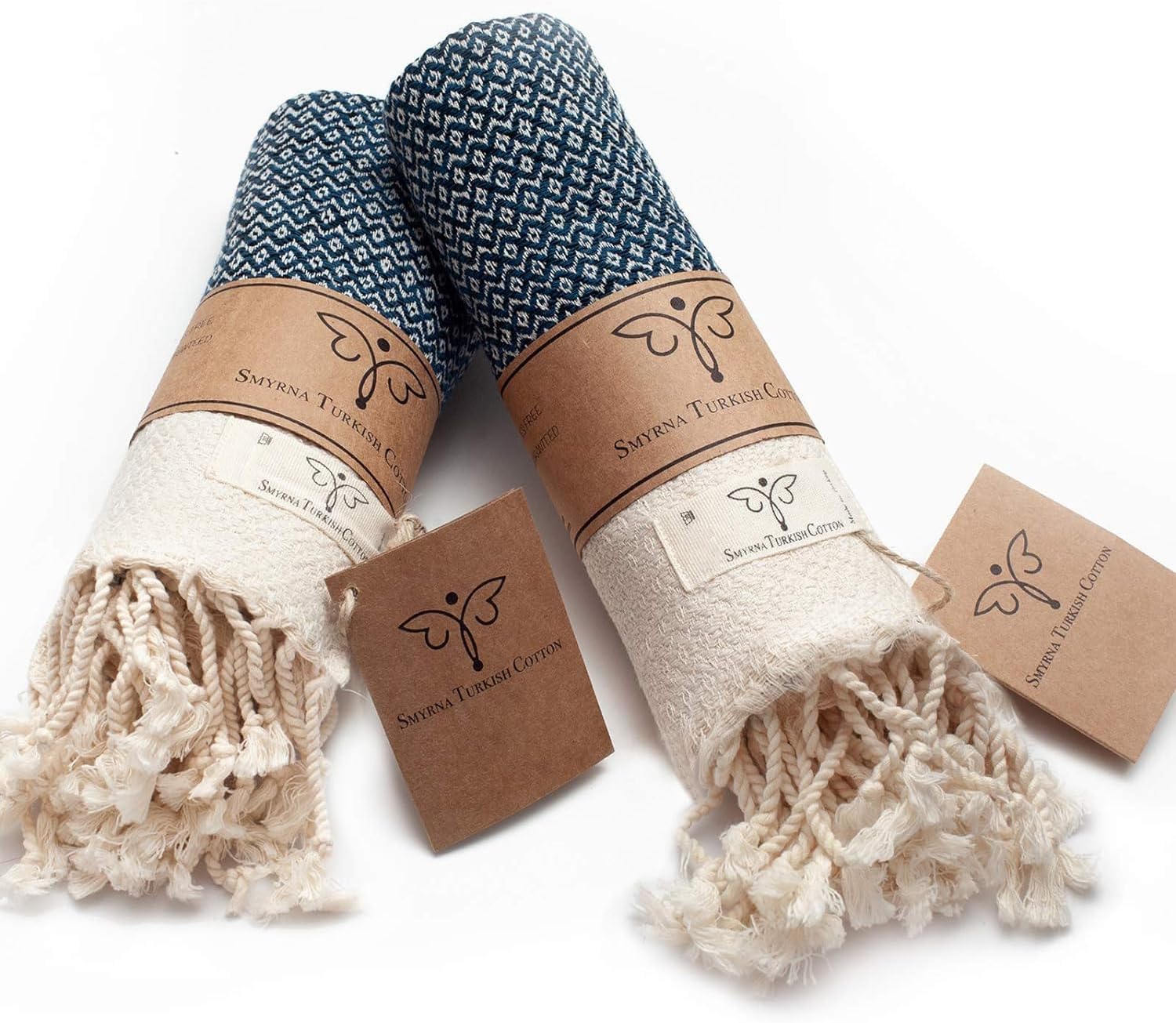 - SMYRNA TURKISH COTTON HAND TOWEL PACK OF 2: Extra large bathroom hand towels. Prewashed to ensure no shrink. Machine washable. Imported from Turkey