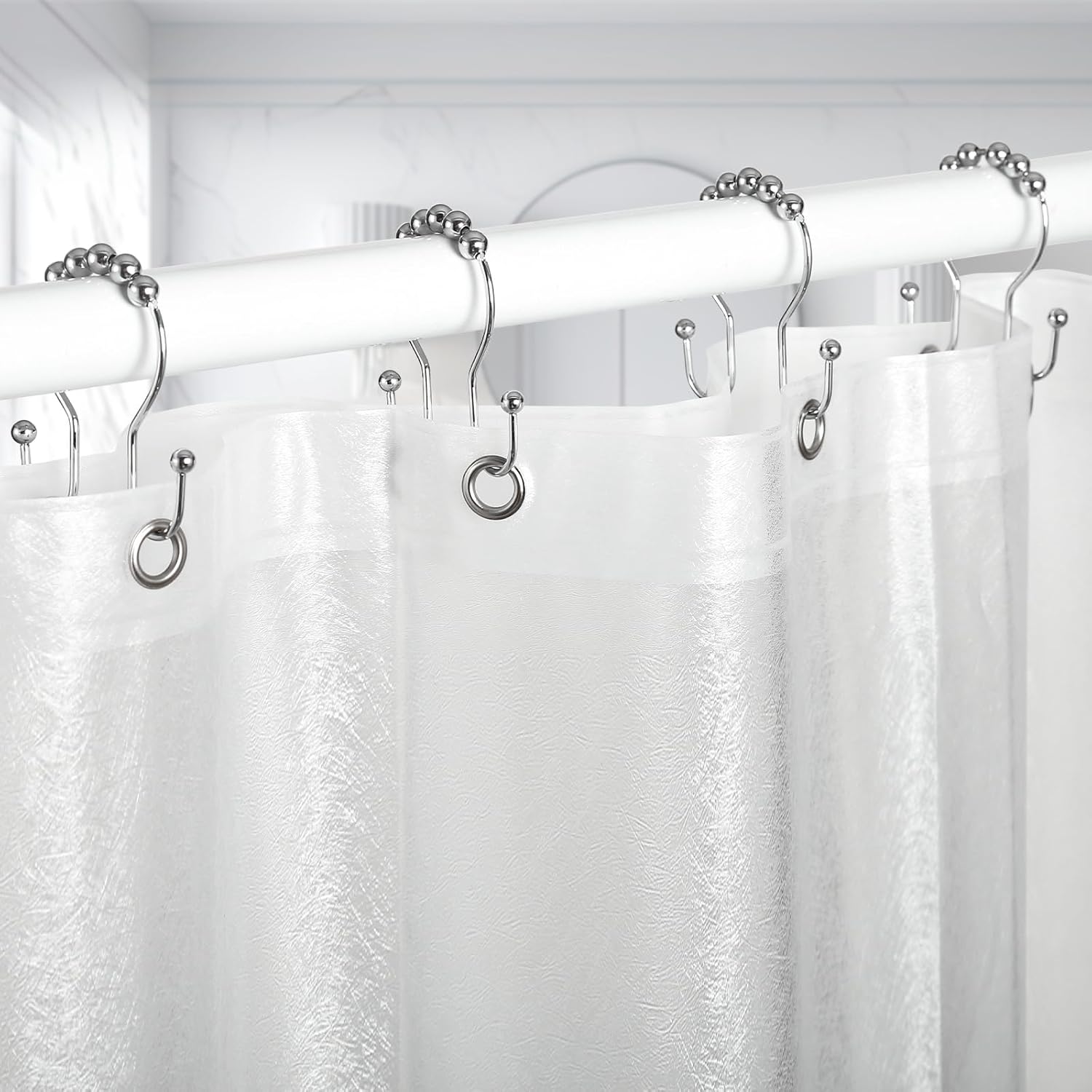- [SLIDING SMOOTHLY]: The shower curtain rings are designed with special spherical balls, which makes it easy to slide on the shower curtain rod without scratching the shower curtain rod.