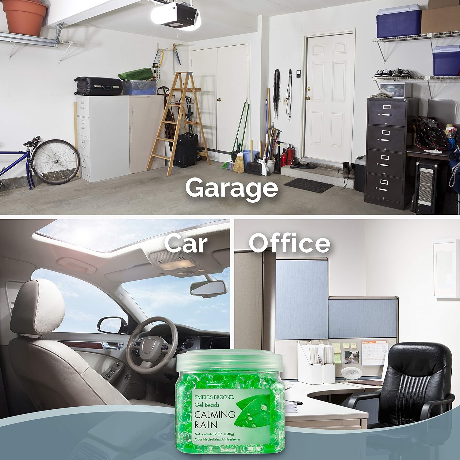 SMELLS BEGONE Odor Eliminator Gel Beads - 12 oz, Pack of 2 - Eliminates Odor in Bathrooms, Cars, Boats, RVs & Pet Areas - Air Freshener - Made with Essential Oils - Calming Rain Scent