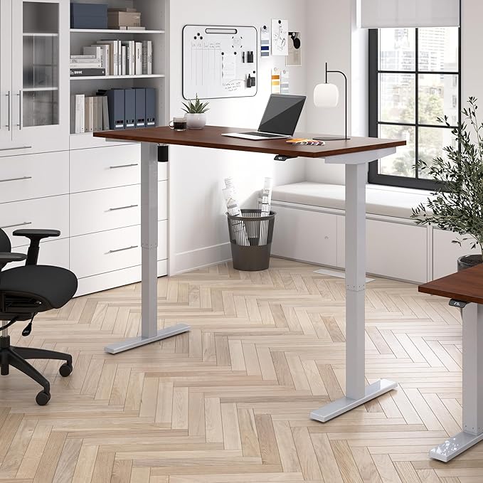 Bush Business Furniture 60-inch Electric Height Adjustable Standing Desk, Ergonomic Sit-Stand Computer Table for Home and Professional Office, Move 40 Series, Hansen Cherry with Metallic Gray Base