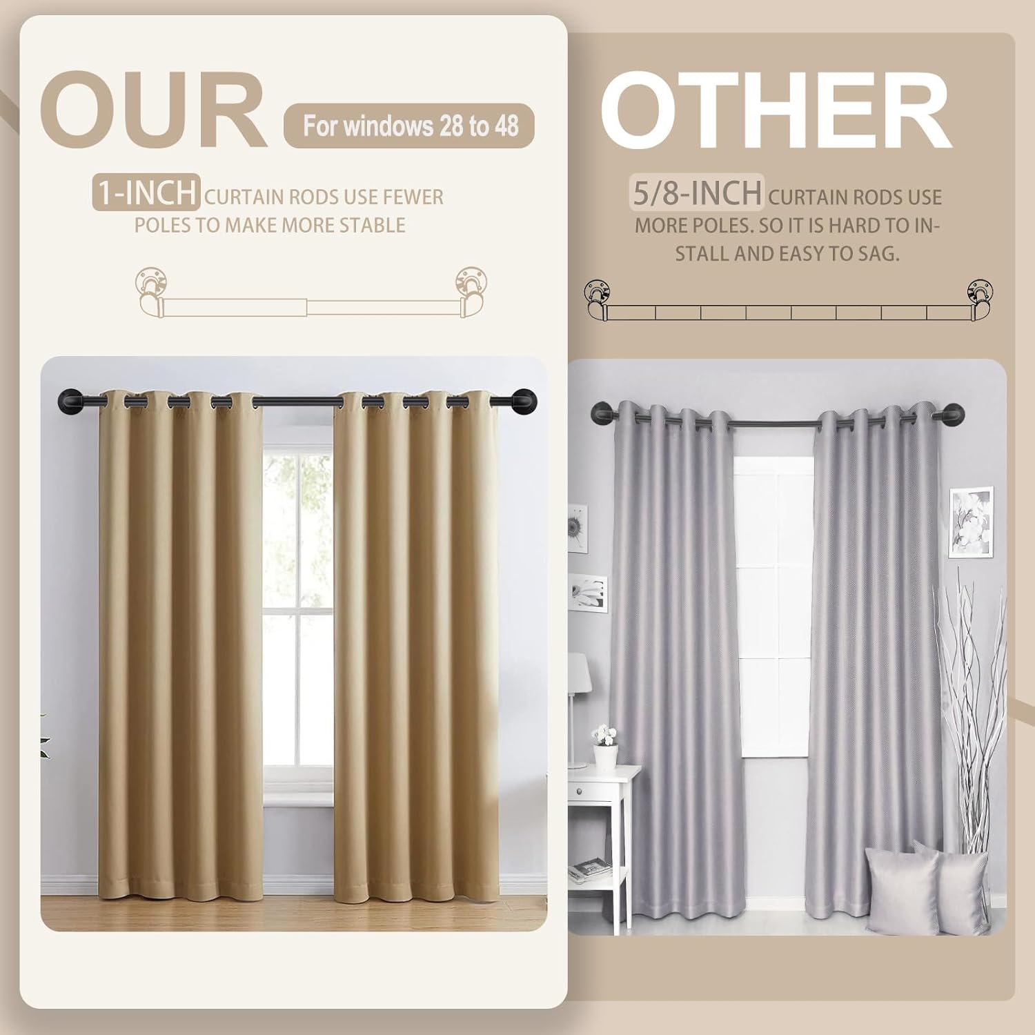 Blackout Industrial Curtain Rods for Windows, 1 Inch Pipe Wrap Around Indoor/Outdoor Room Divider Curtain Rods, 28-48 Inch, Black