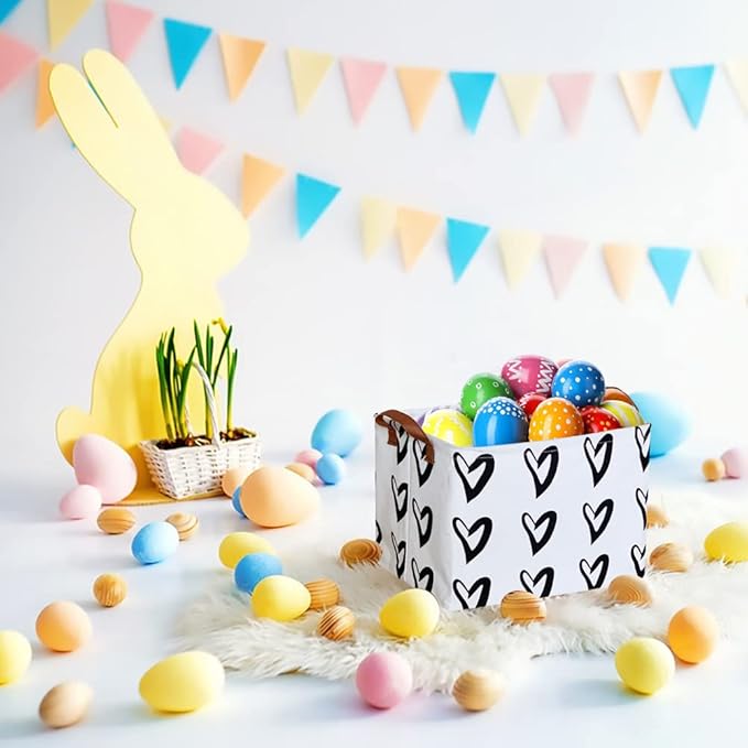 CLOCOR Heart Rectangular Basket, Cute Pattern Storage Bin, Collapsible Waterproof Storage Box with Handles for Kids, Gift Baskets, Shelf Basket (Black Hearts)