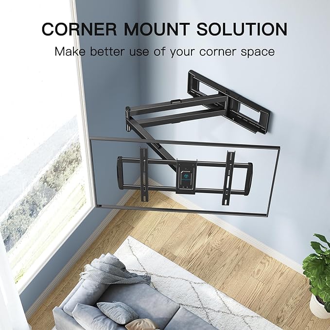 - SAVE SPACE IN YOUR ROOM: Installing the PSXLF01 corner TV wall mount will allow you to bring the screen closer to you when viewing and collapse it against the wall when not in use. The TV wall mount can be retracted to 4.5" from the wall. You can also mount it in the corner to free up room for other furniture or decor, giving your home a more modern, sleek look and reducing clutter in the process.