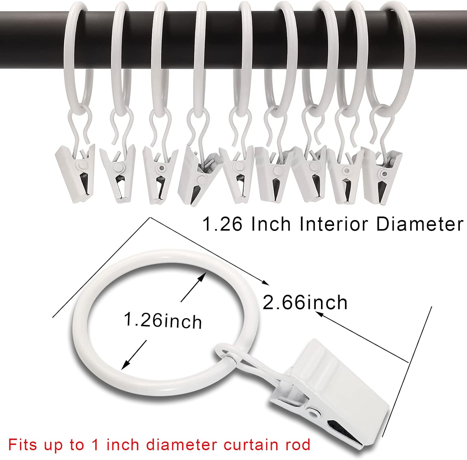 - CURTAIN RINGS CLIPS DIMENSIONS: The drapes rings 1.26 inch interior diameter, Fits up to 1 inch or smaller diameter curtain rod.