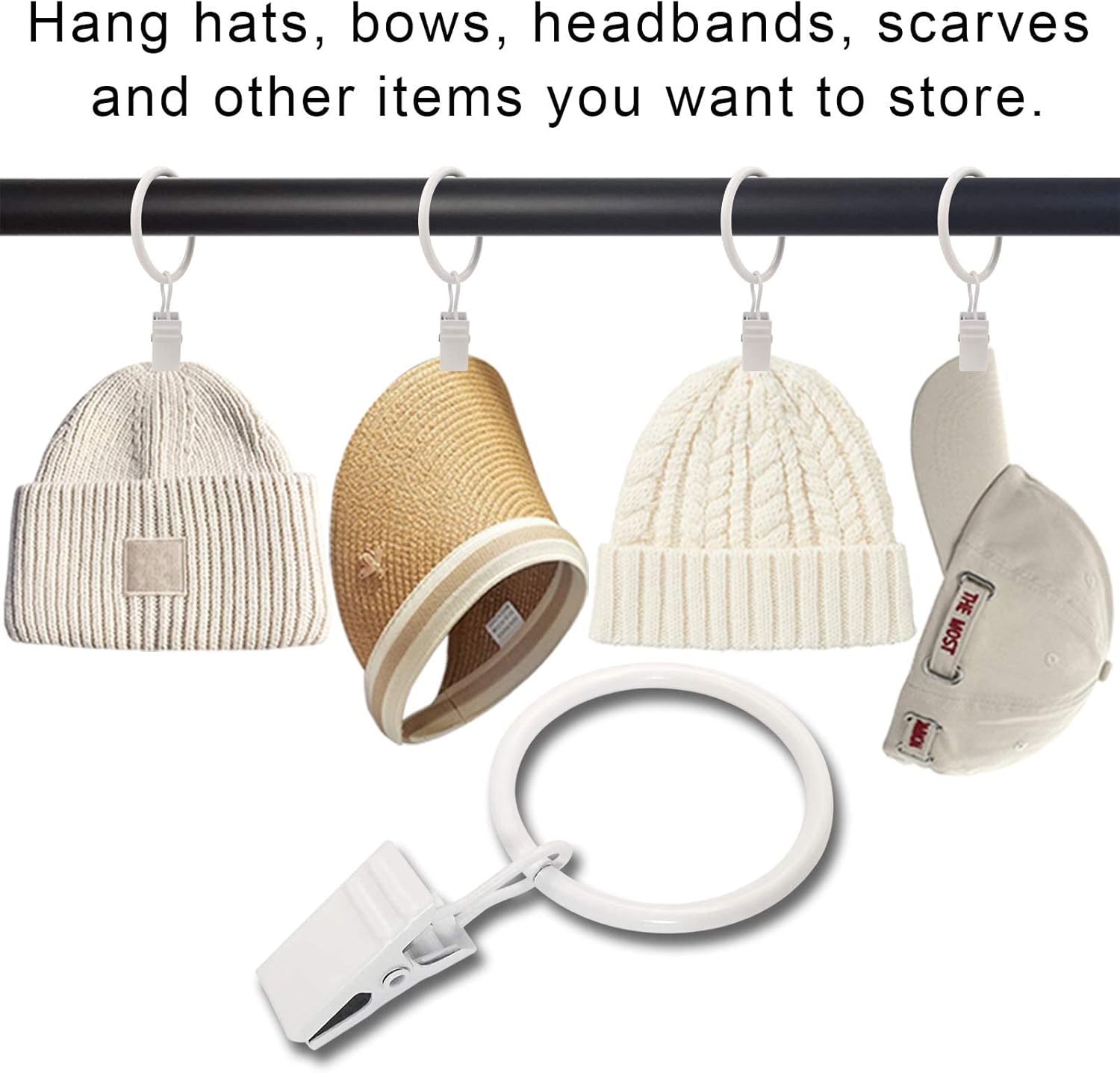 40 Pack Curtain Rings with Clips, Drapery Clips with Rings, Drapes Rings 1.26 in Interior Diameter, Fits up to 1 in Curtain Rod, White