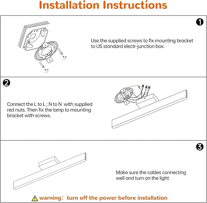 - Easy Installation: The LED vanity light is designed with pre-assembled construction for easy and quick installation. All essential components and instructions are included in the package. Suitable for US standard junction box.