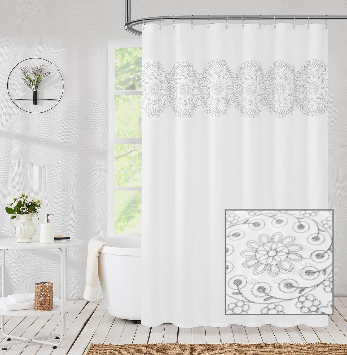 - 【PACKAGE CONTENT】: One Floral Embroidered Shower Curtain in package, which measures 70 by 72 inches. Please note that the shower curtain hooks are not included in the package