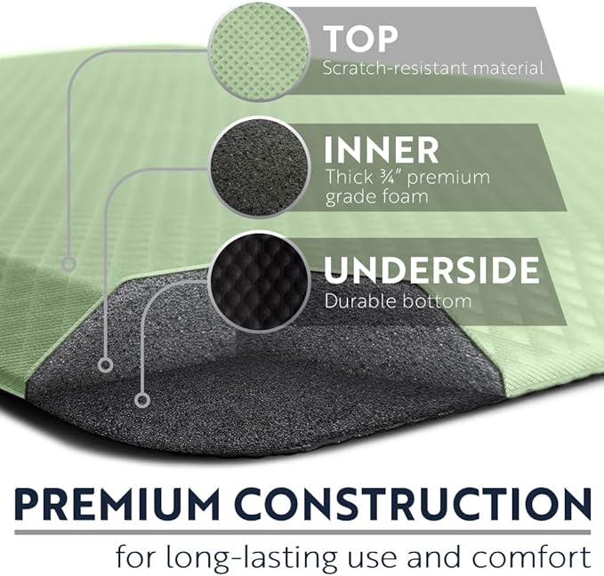 - THICK AND SUPPORTIVE CUSHIONING: extra thick, three quarter inch foam mat is extremely comfortable and engineered to help keep you supported; premium foam inner layer for strong rebound and maximum support; your feet will thank us later