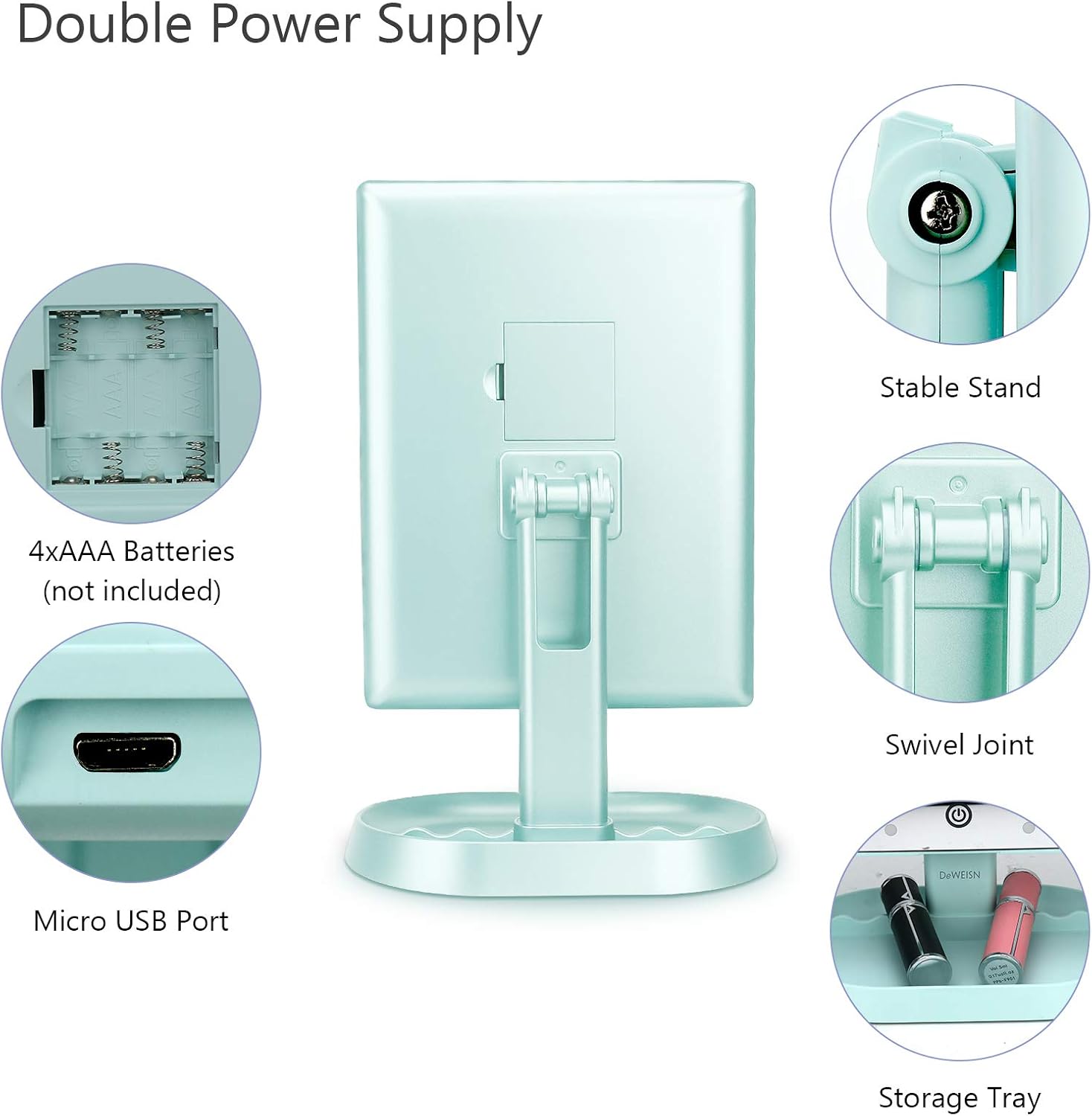 - 【 90° ROTATION & DOUBLE POWER SUPPLY 】 - The professional tabletop mirror can be rotated 90°, can be fixed in any position to give comfortable viewing angle. The mirror operated by Micro USB cable supply or 4 AAA batteries, whether you are at home or outdoor, it is very practical.( battery not included, usb wire included, pls noted the mirror can't store power by itself).