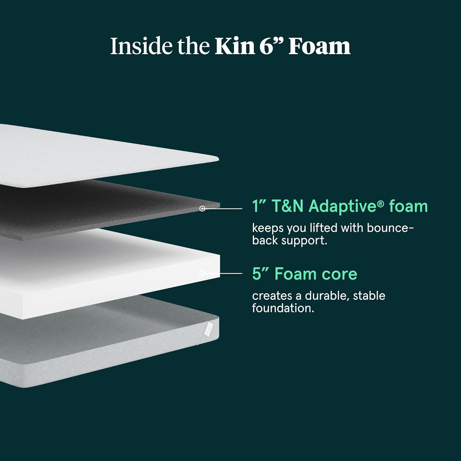Kin By Tuft & Needle Firm 6" Full Adaptive Foam Mattress in a Box, Cooling Pressure Relief, Balanced Support, 100 Night Trial, Fiberglass-Free, CertiPUR-US, 10-Year Limited Warranty