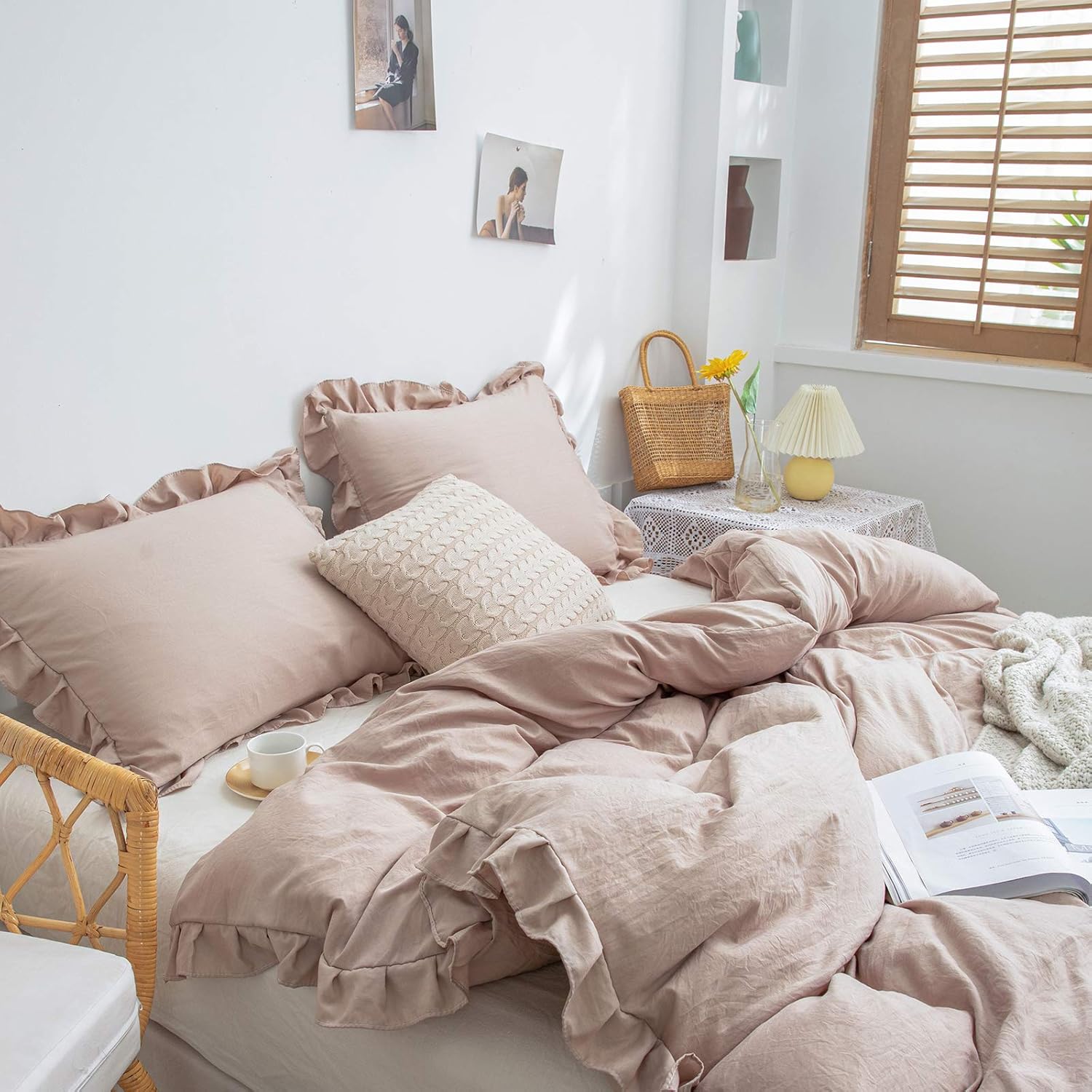 - UNIQUE DESIGN - Solid pattern with ruffles fringe design looks elegance and romantic, simple but stylish, reflect a sense of old materials and vintage modern look.