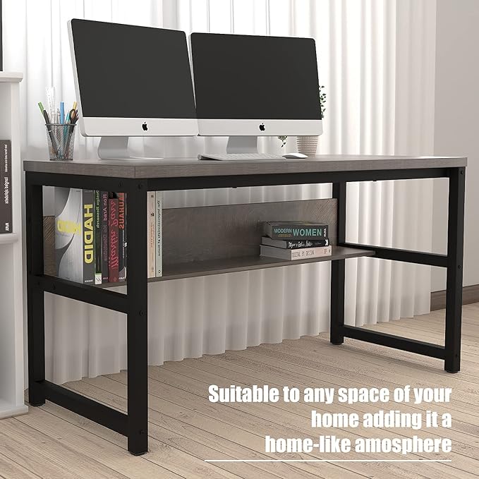 - Big Space: 55" x 23.6" (140 X60cm) desktop provides plenty of room for a variety of monitor and laptop setups along with important work projects and office supplies.