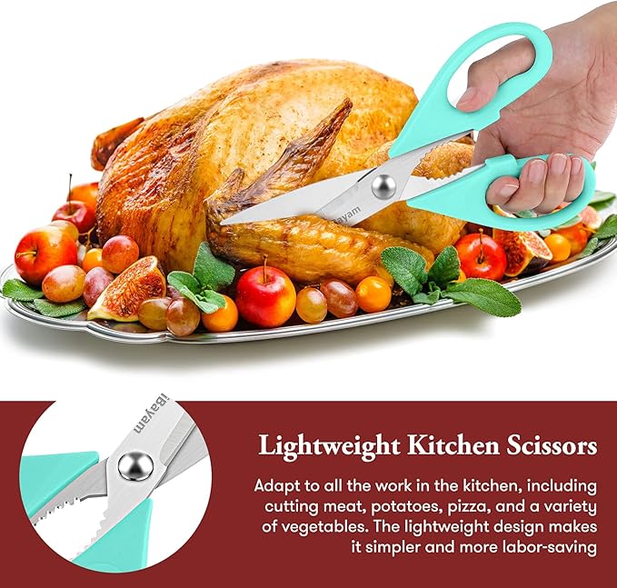 iBayam Kitchen Scissors - All Purpose Heavy Duty Meat Scissors, Poultry Shears, Dishwasher Safe, Stainless Steel, 2-Pack, Pastel Pink, Mint Blue