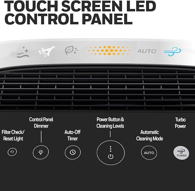 - Easy to Use: This convenient extra large room air purifier comes with initial HEPA filters and odor-reducing pre-filter. It also features at-a-glance settings to see and optimize your cleaning level