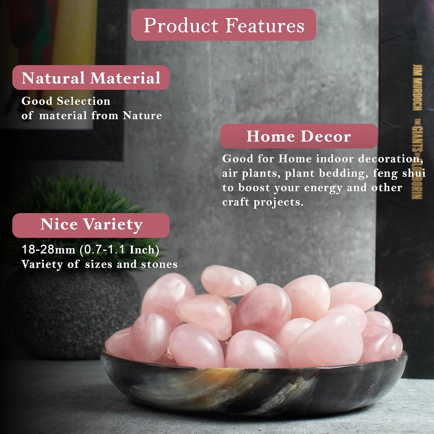 - Tumbled stones : These lovely Rose quart tumble stones are handcrafted in India. The set contains a bunch of 1 LB tumbled stones with a pouch, a crystal guide and a Thank you card. Perfect for crafts, home decor, lapidary,cabbing, and cutting.