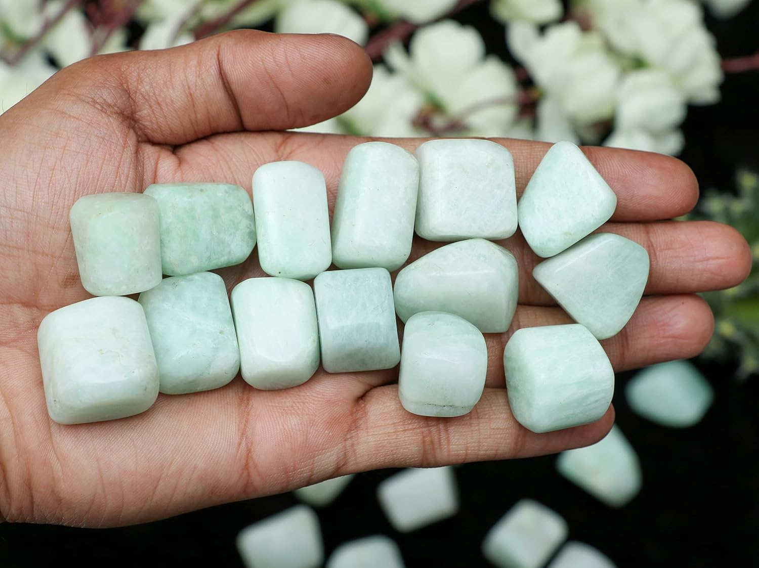 - Tumbled stones : These lovely Amazonite tumble stones are handcrafted in India. The set contains a bunch of 1 LB tumbled stones with a pouch, a crystal guide and a Thank you card. Perfect for crafts, home decor, lapidary, cabbing, and cutting.