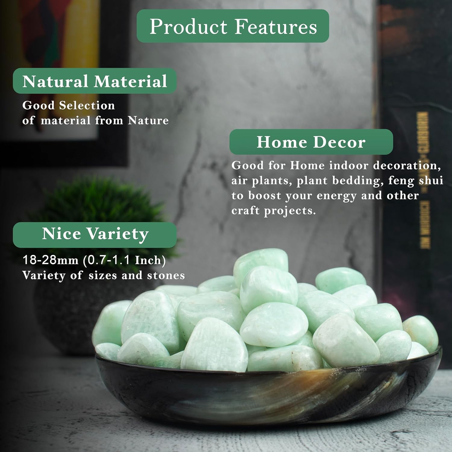 Crocon 1LB Amazonite Tumbled Stones and Crystals bulk 2000+ Carats Natural Crystal Kit for Reiki Healing Crystal Polished, Tumble Stones, Chakra Balancing, Reiki Gift, Home Decor Size : 20-25 mm