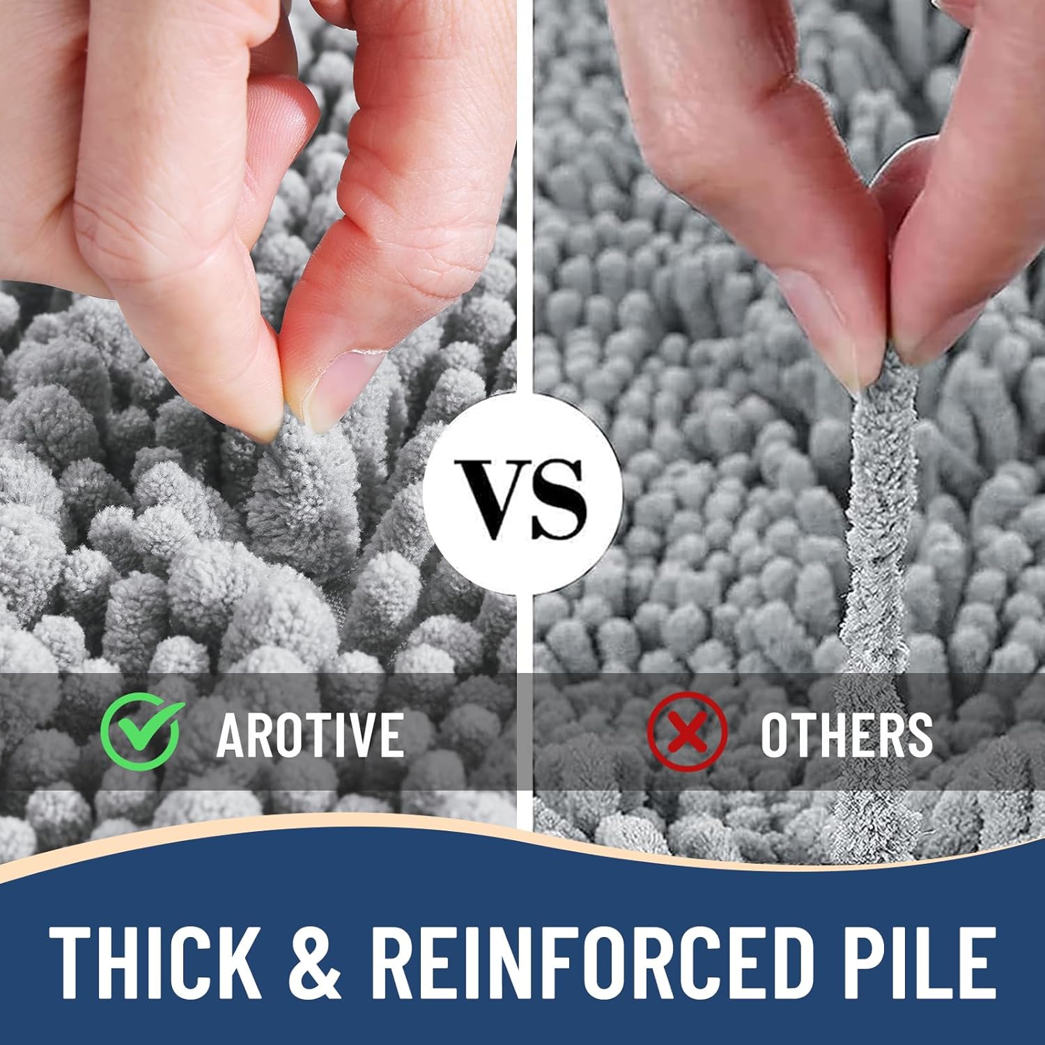 Arotive Luxury Chenille Bathroom Rug Mat, Extra Soft Thick Absorbent Shaggy Bath Rugs, Non-Slip Machine Wash Dry, Plush Bath Mats for Bathroom, Shower and Tub, 47x24, Light Grey